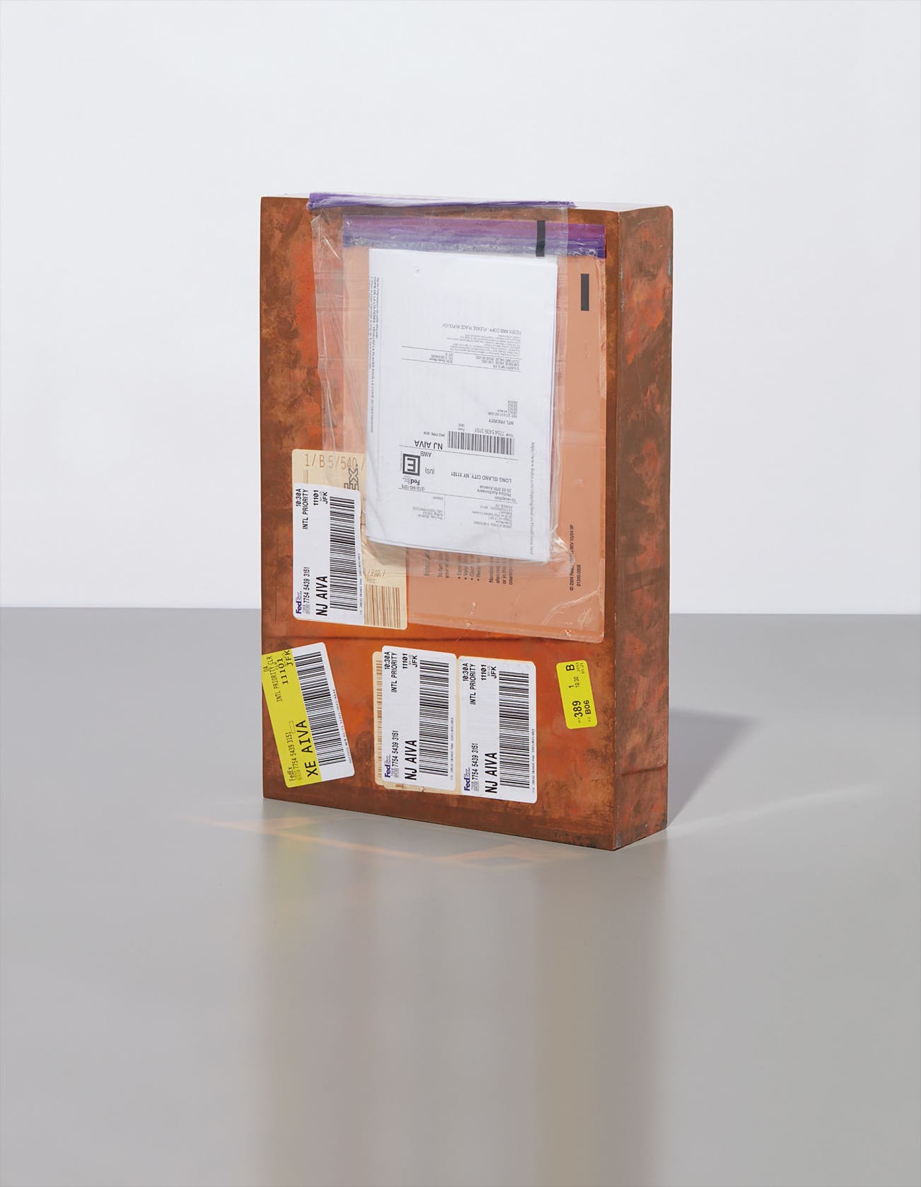 polished copper box, accrued FedEx tracking and shipping labels