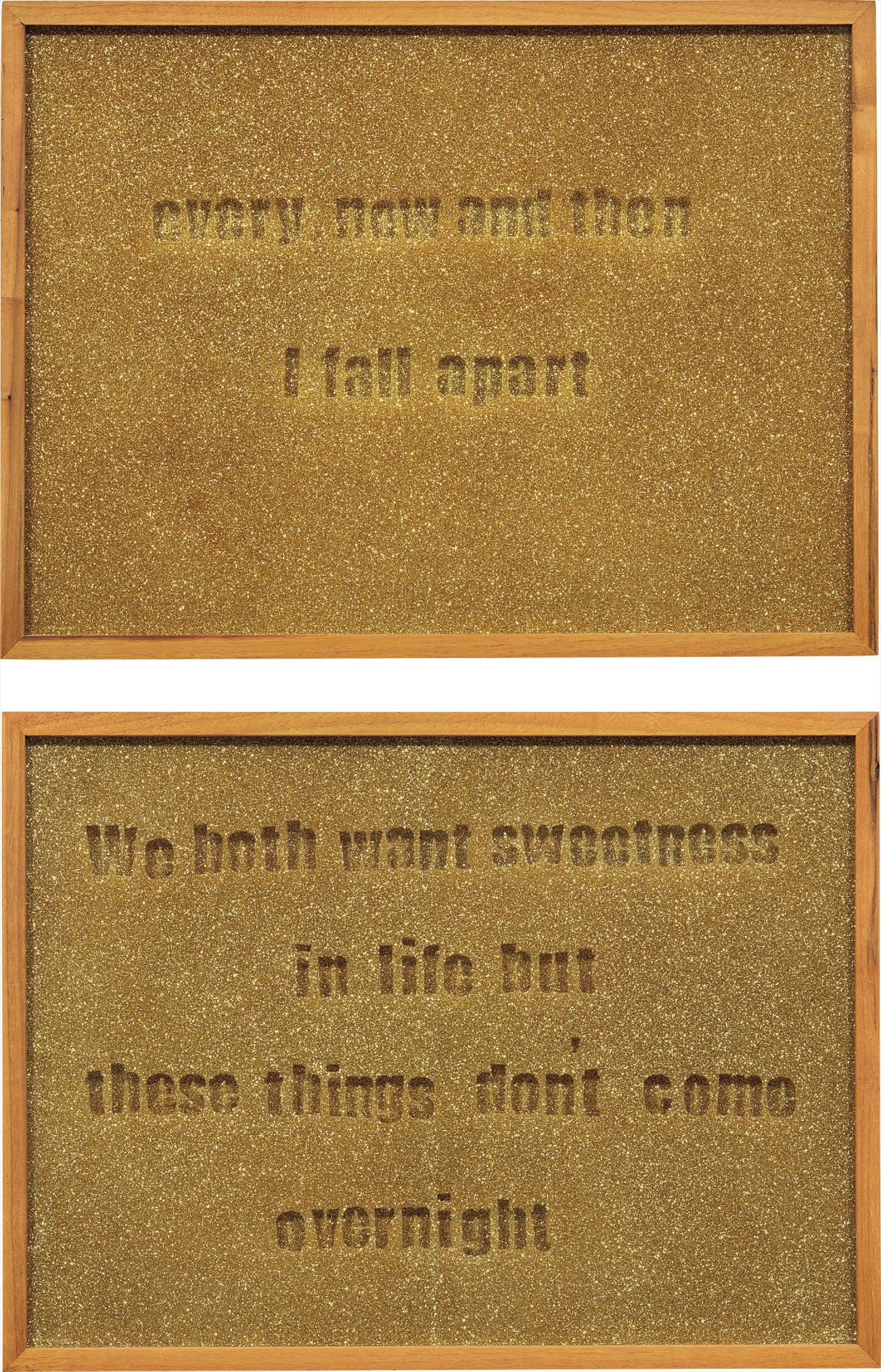 Two works: (i) "Every Now and Then..."Bonnie Tyler; (ii) "We Both Want Sweetness in Life..."Chairman of the Board) from the series Do You Feel Me