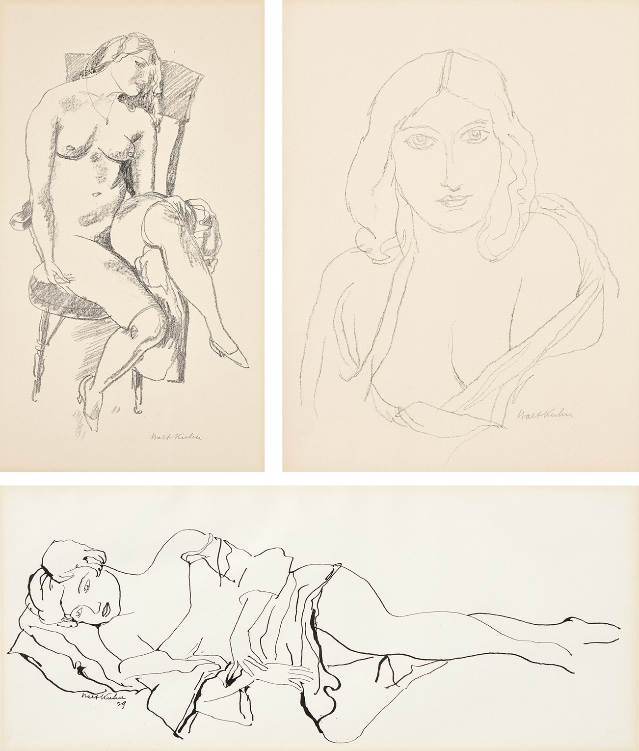 Two lithographs and one black ink drawing, on wove paper, with margins.
