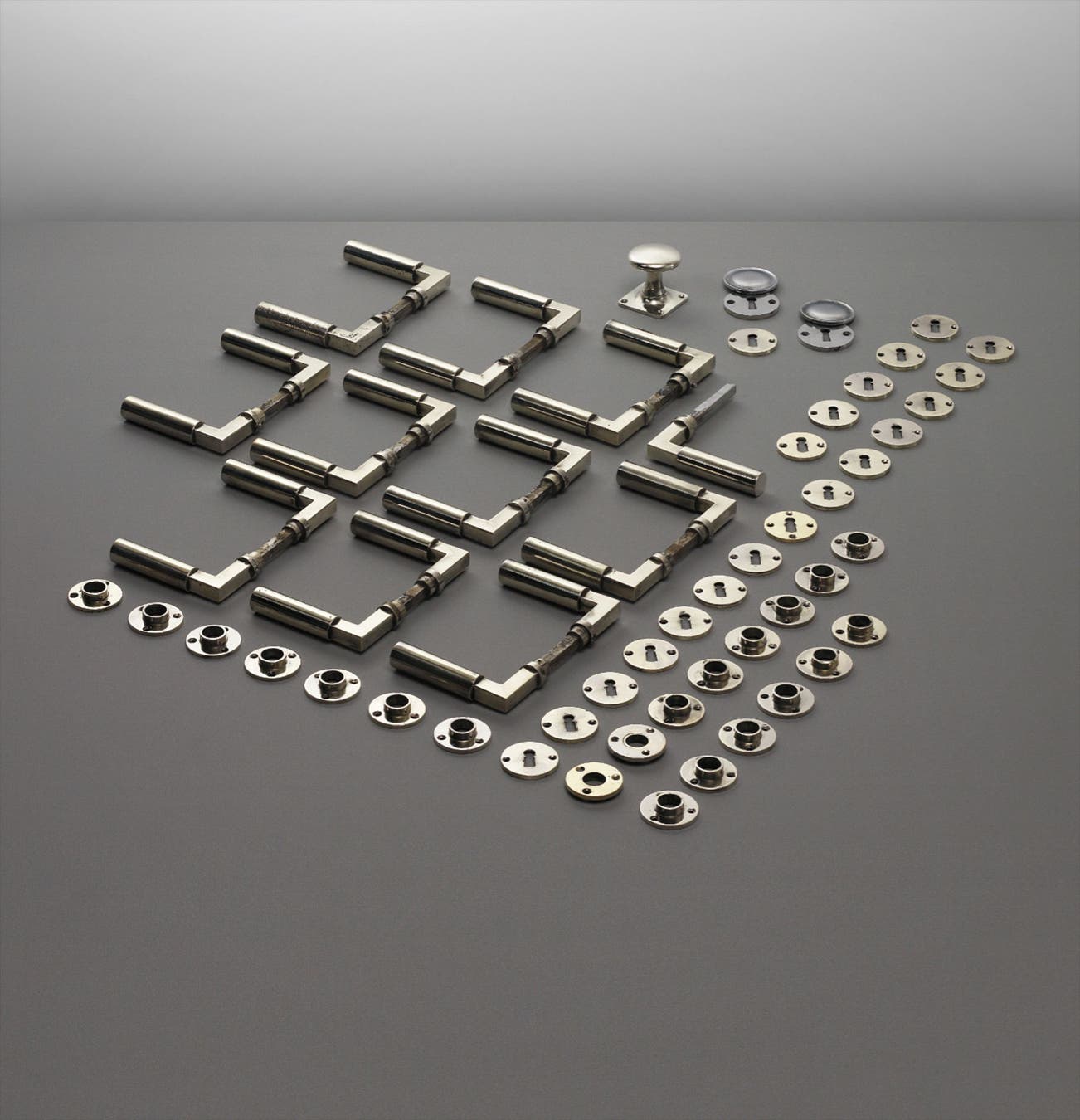 Set of eleven door handles