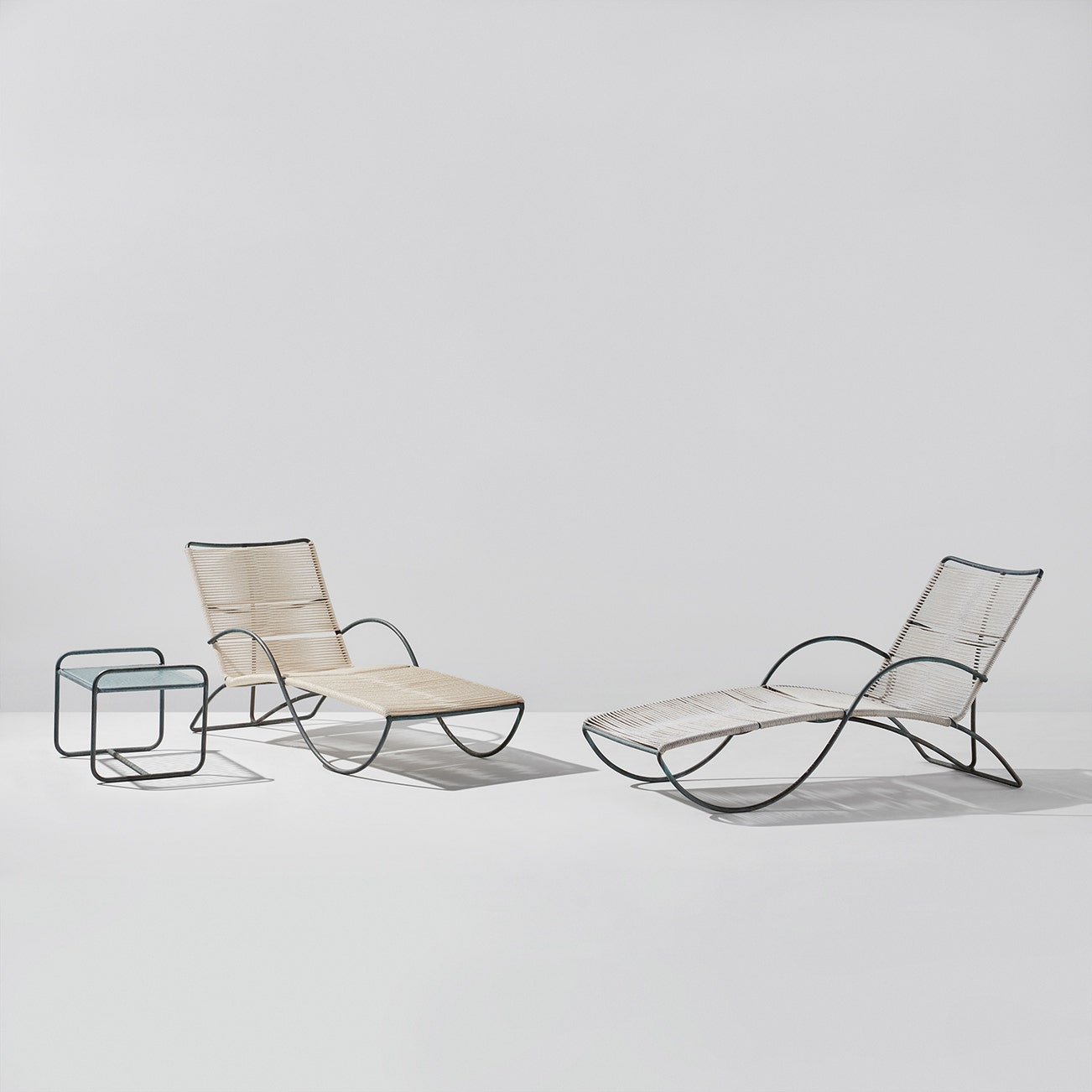 Side table, model no. 1174-1823, and pair of chaises longues, model no. 1170-7400