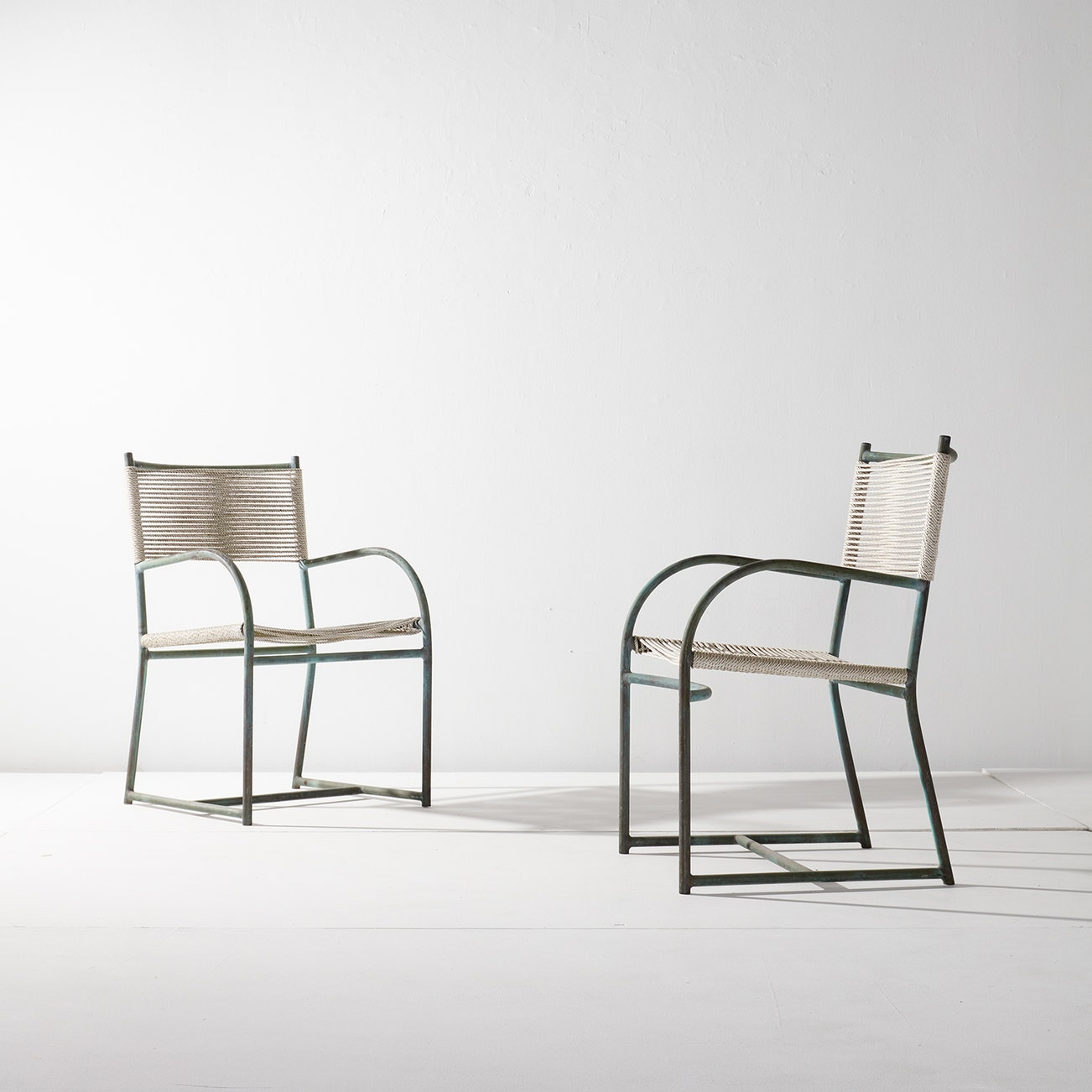 Patinated bronze, cord.