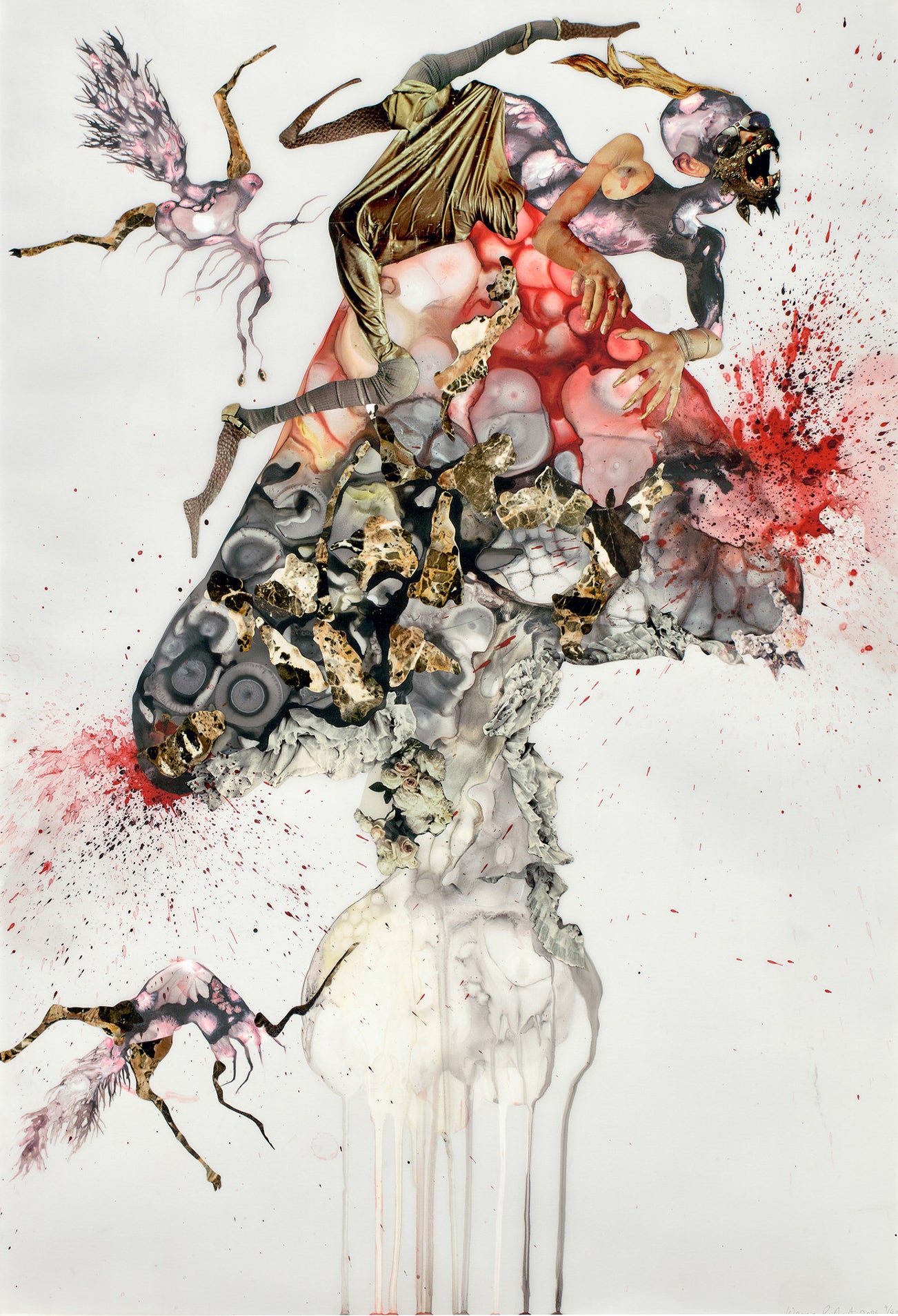 Archival pigment print with screenprint in colors, on smooth wove paper, with full margins.