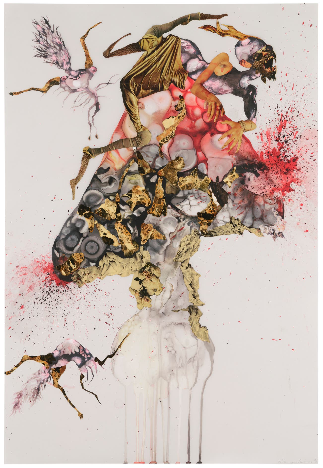 Archival pigment print with screenprint in colors, on smooth wove paper, with full margins.