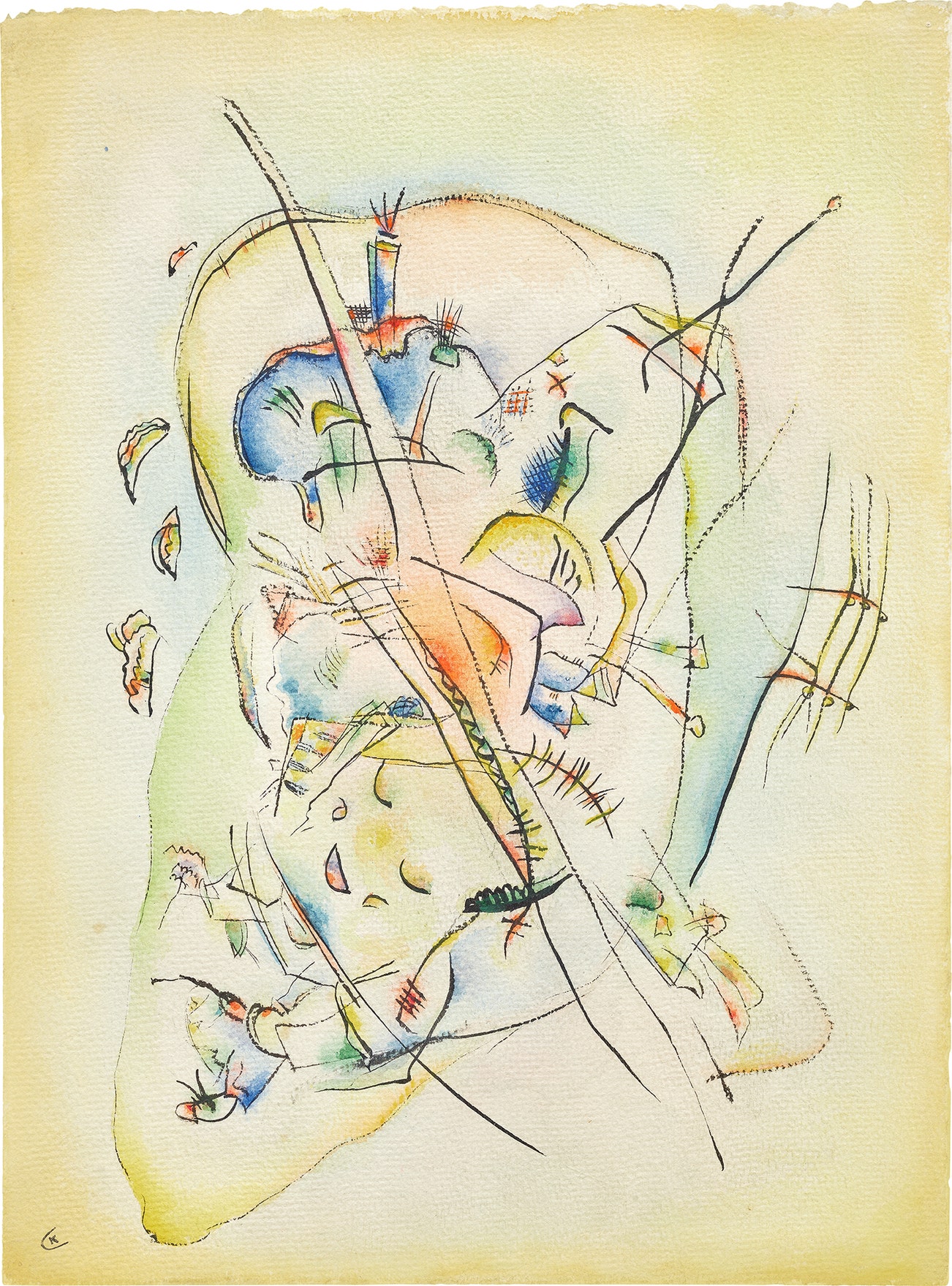 signed with the artist’s monogram “K” lower left; signed and dated "Kandinsky 1918" on the reverse