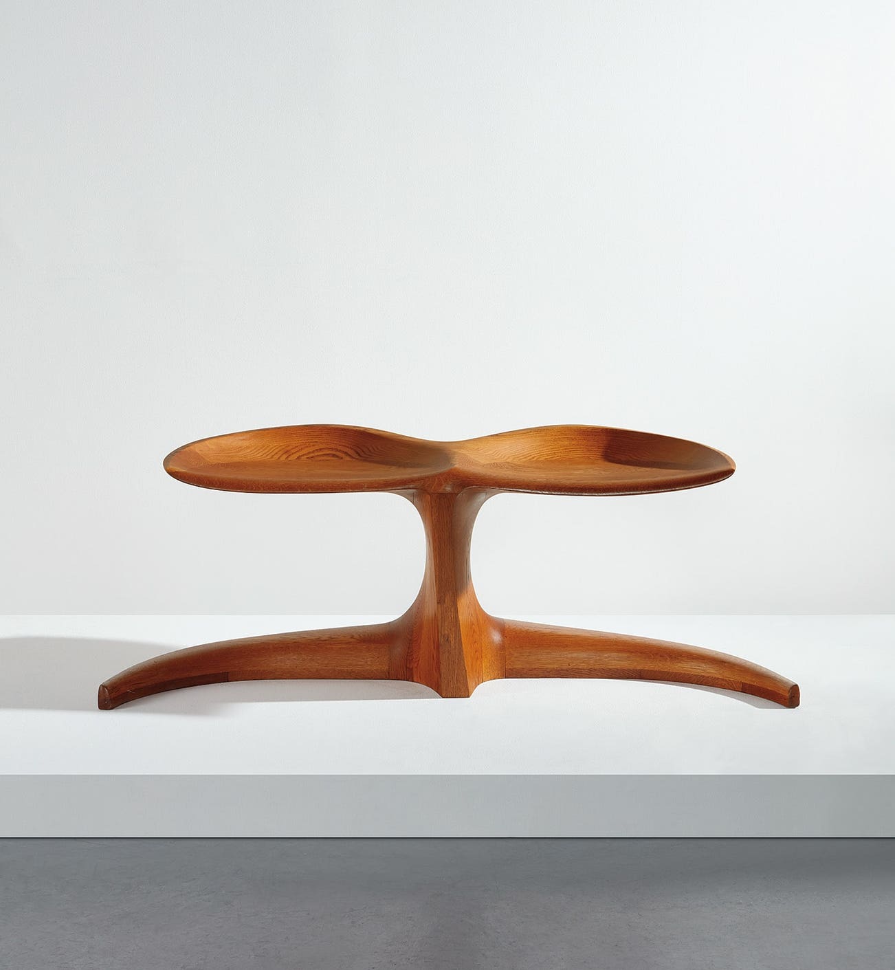 The present lot was formerly in the collection of Lee Nordness, the New York-based curator and gallerist who organized the exhibition Handcrafted Furniture by Wendell Castle – New York Debut, Castle’s first exhibition in New York City. Butterfly Love Seat was among just ten pieces of furniture Castle designed for the show, which The New York Times reviewed, allowing him to explain his process: “I begin with an idea and sketch of what I want. Each piece of furniture is done one-inch layer by one-inch layer, cutting and gluing as I go. There is a point where it is difficult to imagine where a chair is going.” Following the success of the exhibition, just one year later, Nordness cast him in an even bigger role. He included Castle’s work in the seminal exhibition Objects: USA, a traveling survey of American craft from the Johnson Collection. One of the most important exhibitions of American design in the twentieth century, the show traveled across America and Europe over five years and thirty venues, and Castle rapidly rose to international acclaim. At the time Nordness declared Castle “largely responsible for the recent renaissance of wood as a creative medium.” Fifty years later, his work is still leading the charge.