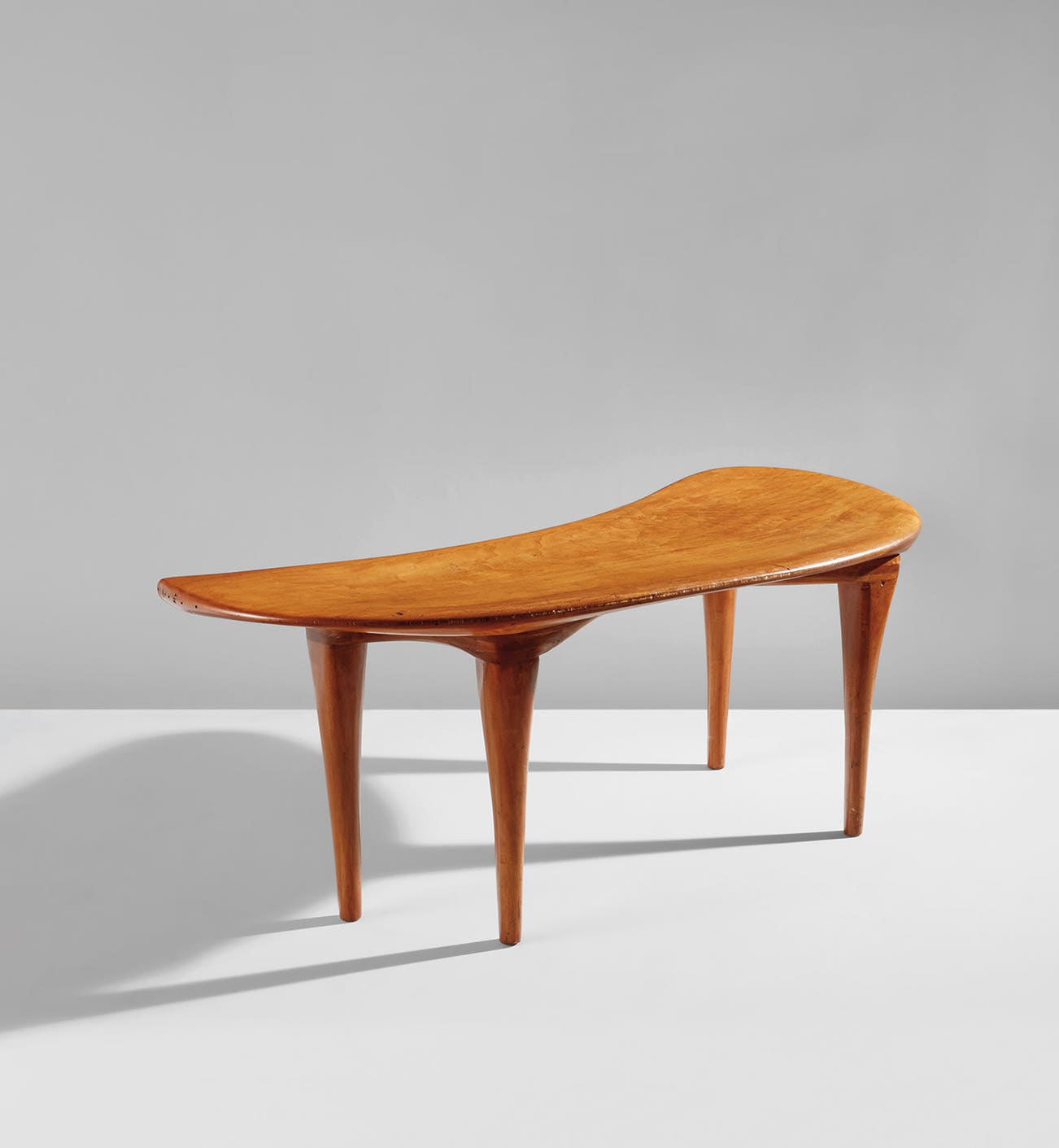 He was not a worshipper of wood for the sake of wood. His approach was that of a sculptor who knew and understood the structural and aesthetic qualities of his material. This feeling for material and a sure engineering sense produced furniture of unusual structure which was always sound. The wood used was local wood which he air dried in a shed near his studio. His work never showed a concern for decorative details or tricky craftsmanship: just good sound workmanship and that special personal sculptural quality that made the furniture uniquely Esherick’s. No one else could have done it.