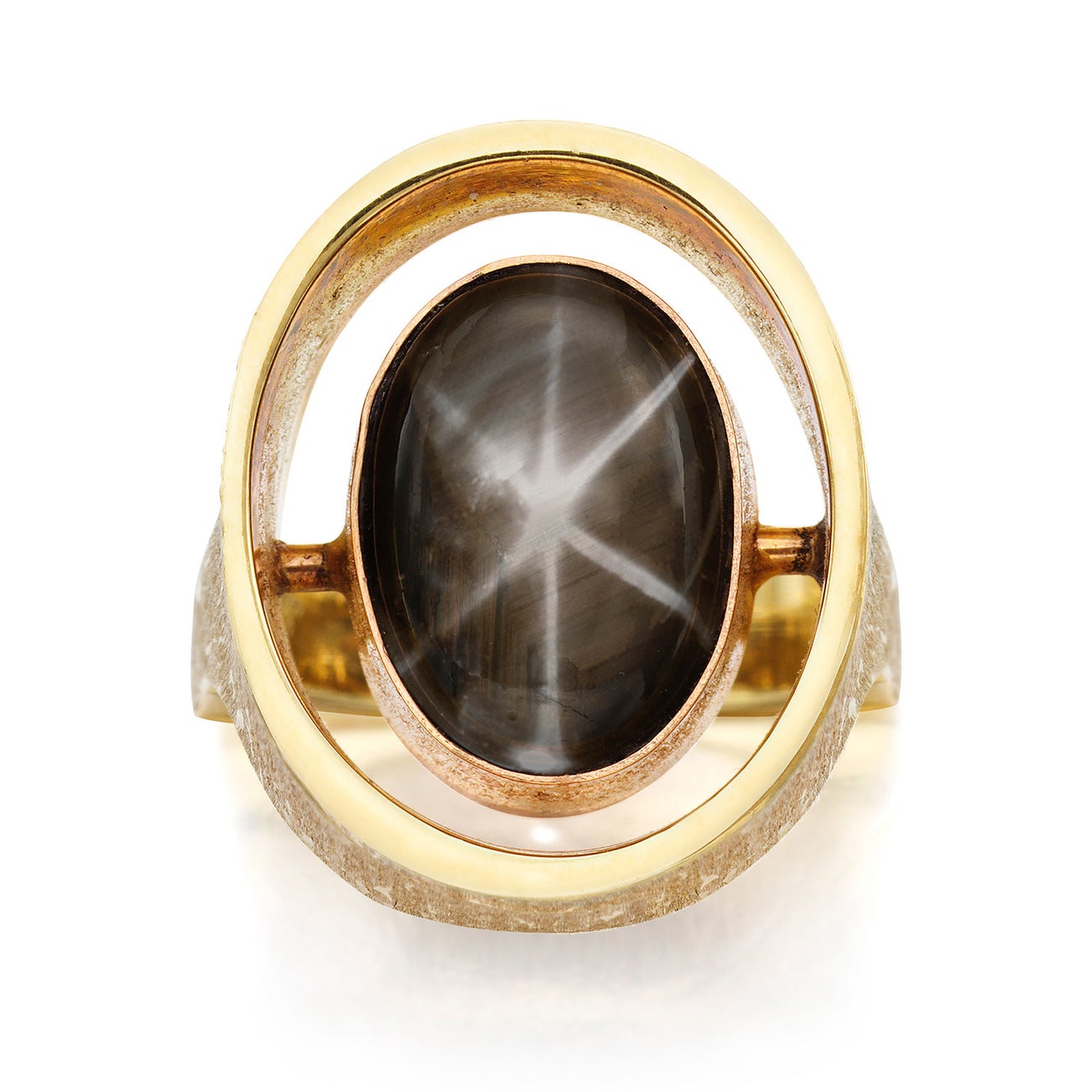 A Black Star Sapphire and Gold Ring