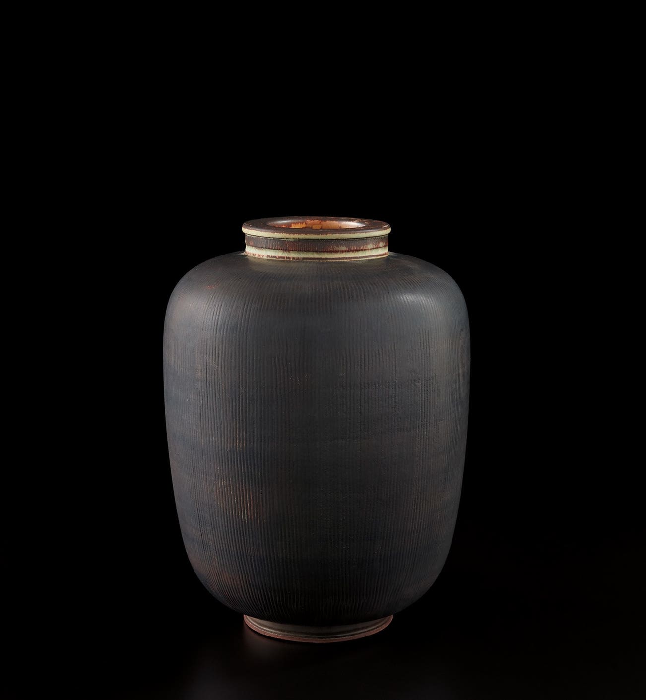 Produced by Gustavsberg, Sweden. Underside with manufacturer's paper label printed GUSTAVBERG/SWEDEN, incised KAGE and with date mark, and impressed with studio mark, FARSTA and GUSTAVSBERG.