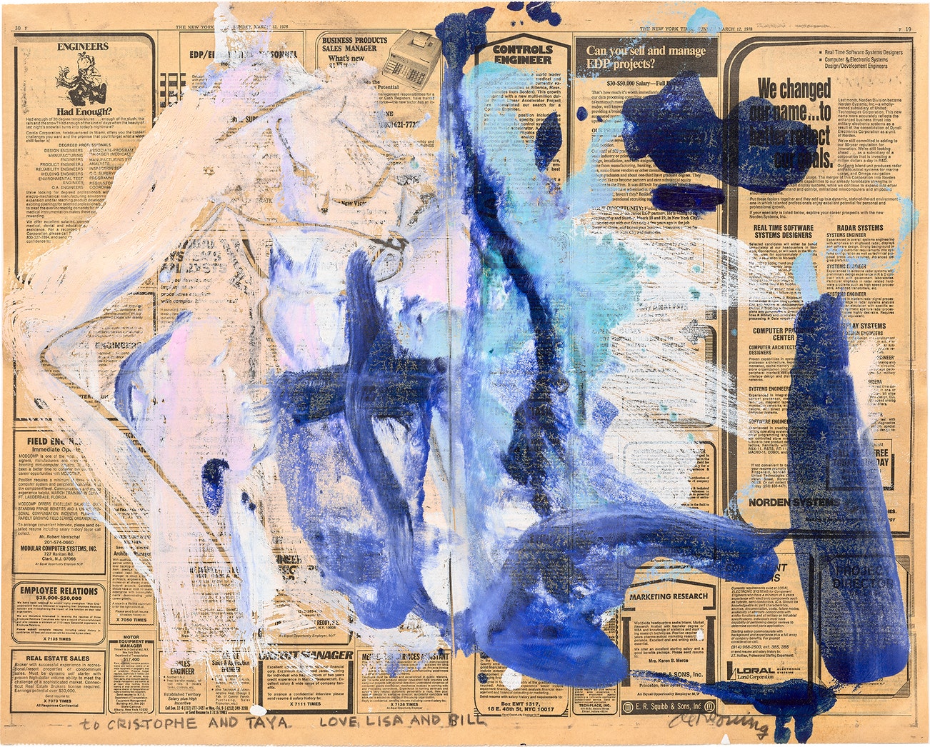 signed “de Kooning” lower right; dedicated “to CRISTOPHE AND TAYA LOVE LISA AND BILL” lower left