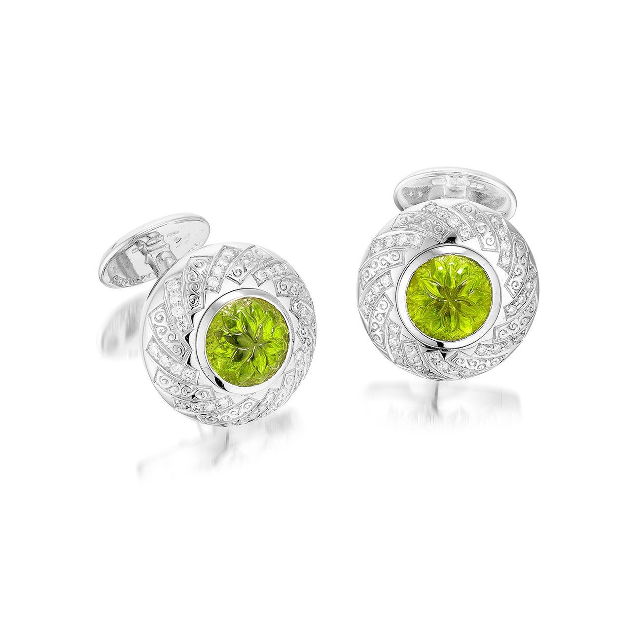 A Pair of Carved Peridot and Diamond Cufflinks