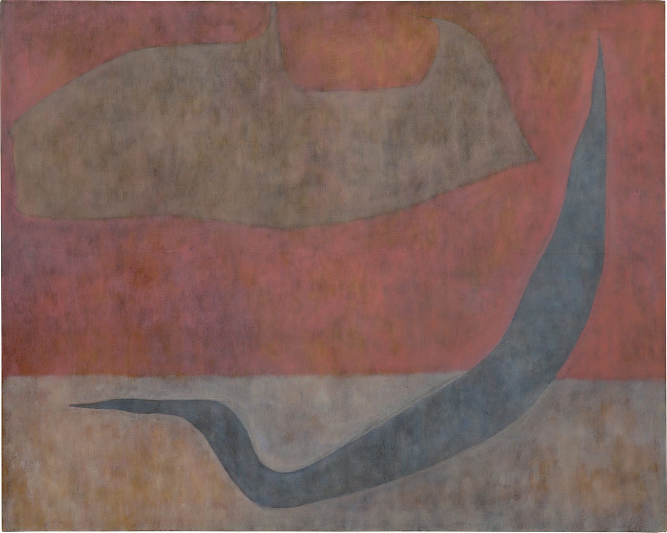 Drawing the viewer into William Baziotes’ poetic realm of pure color and form, Untitled, 1962, is a beautiful example of the distinct painterly idiom of “biomorphic abstraction" the artist pursued up to the last years of his life. Suffused with references to both the knowable and unknowable world, it is paradigmatic of the atmospheric works Baziotes had begun creating since the early 1950s. The delicate, semi-translucent surface is the result of the artist’s increased elimination of brushwork, his process of repeatedly rubbing oil paint into the surface to achieve a soft, dream-like field reminiscent of Mark Rothko’s psychologically charged canvases. While sharing Rothko’s pursuit of a deeper, primordial spiritual truth through painting, Baziotes importantly retained a deep-seated commitment to the figure, as evidenced in the biomorphic shapes which are suspended across the canvas, obliquely referencing the organic realm. As with Dusk, 1958, Solomon R. Guggenheim Museum, New York, Baziotes presents us with a painterly, Baudelairian landscape where association and allusion rule, and stillness abounds with ethereal aftereffect.
