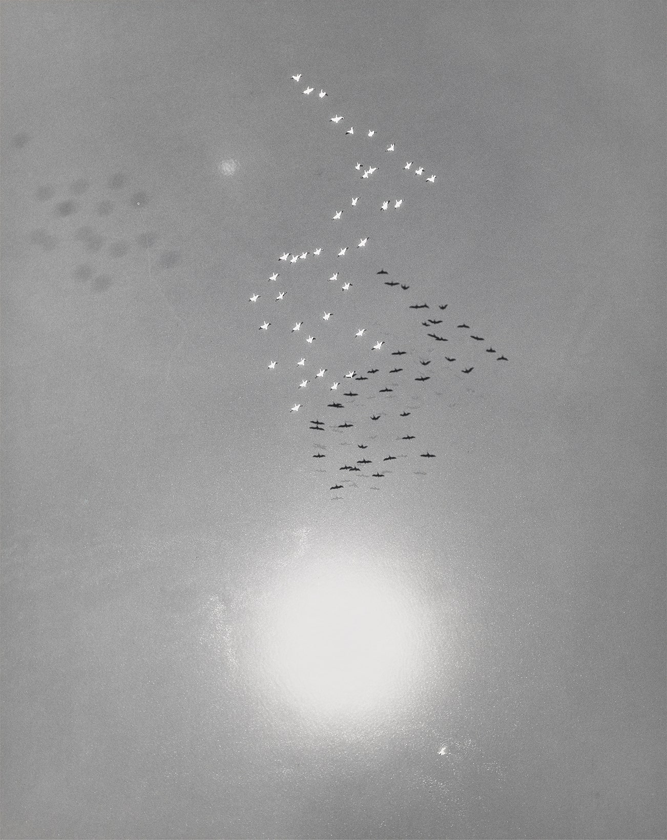 Snow Geese with Reflection of the Sun over Buena Vista Lake, California