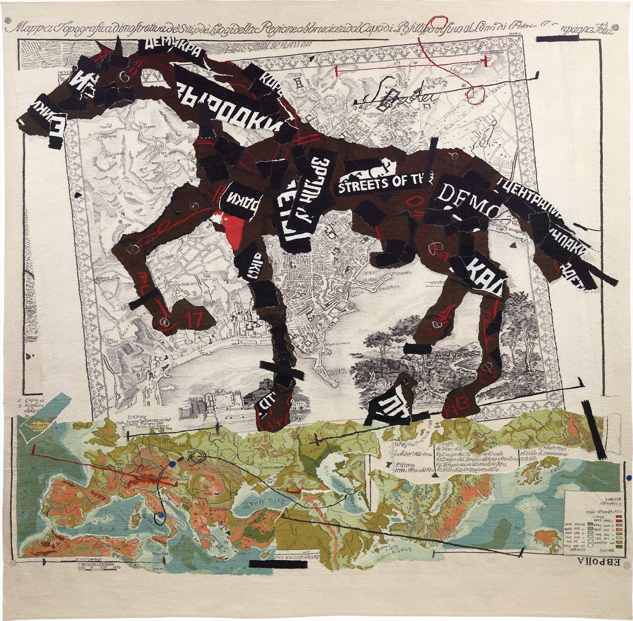 mohair, silk and embroidered tapestry