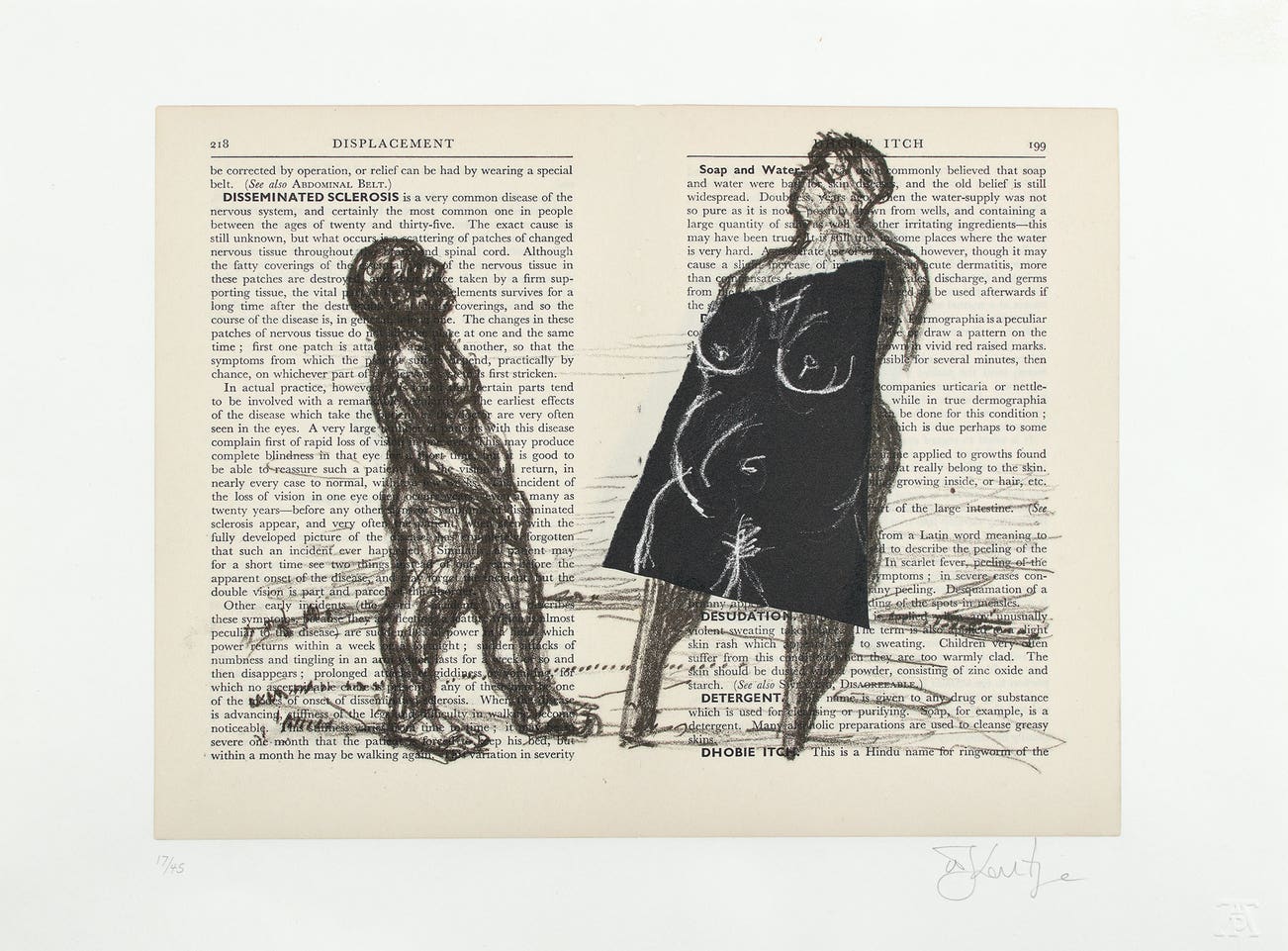 Lithograph on book pages, with Chine-collé to Rives BFK paper, with full margins.