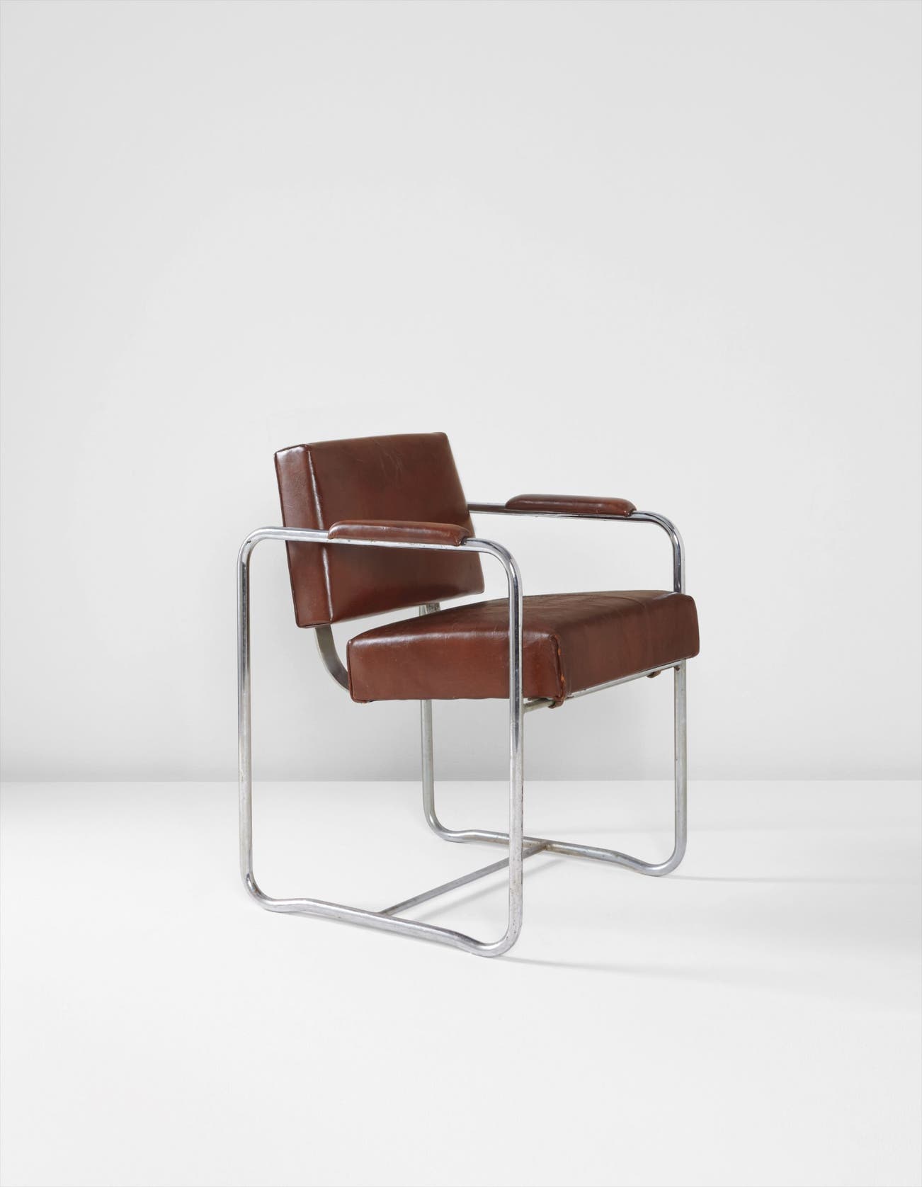 Only two of the present model armchair from the Hattie Carnegie Salon are known to be extant; the other example resides in the Museum of Fine Arts, Houston (accession no. 2006.1271). Lescaze outfitted the Philadelphia Savings Fund Society (PSFS) building as well as his own home with similar chairs (see: Domus, no. 89, May 1935, p. 15), however the proportions of the Hattie Carnegie armchairs are more diminutive.