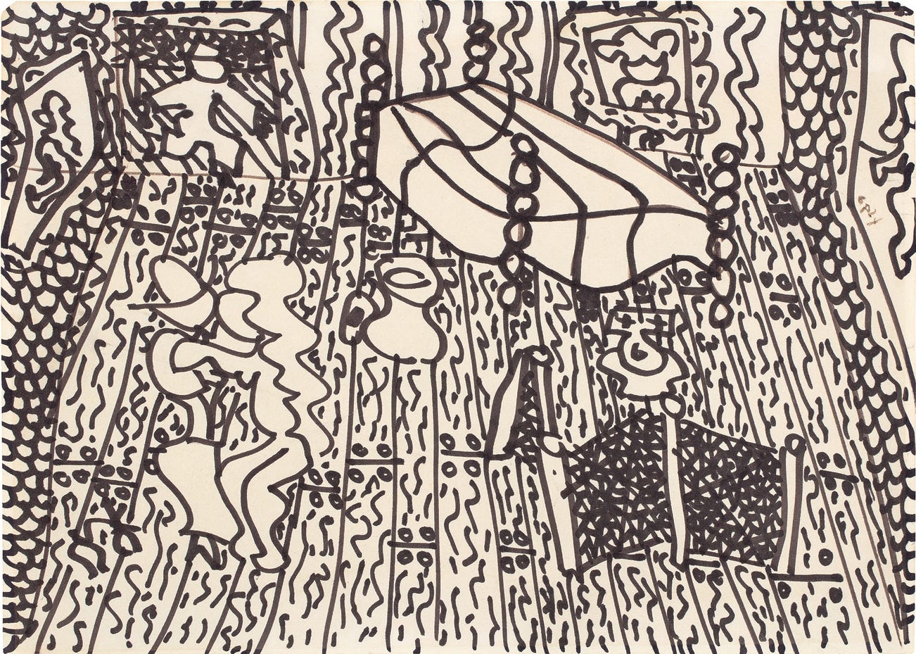 Signed 'CPLY' in black marker, additionally signed, titled, dated and inscribed 'Bill Copley c/o David Stuart Gallery' in pencil on the reverse, framed.