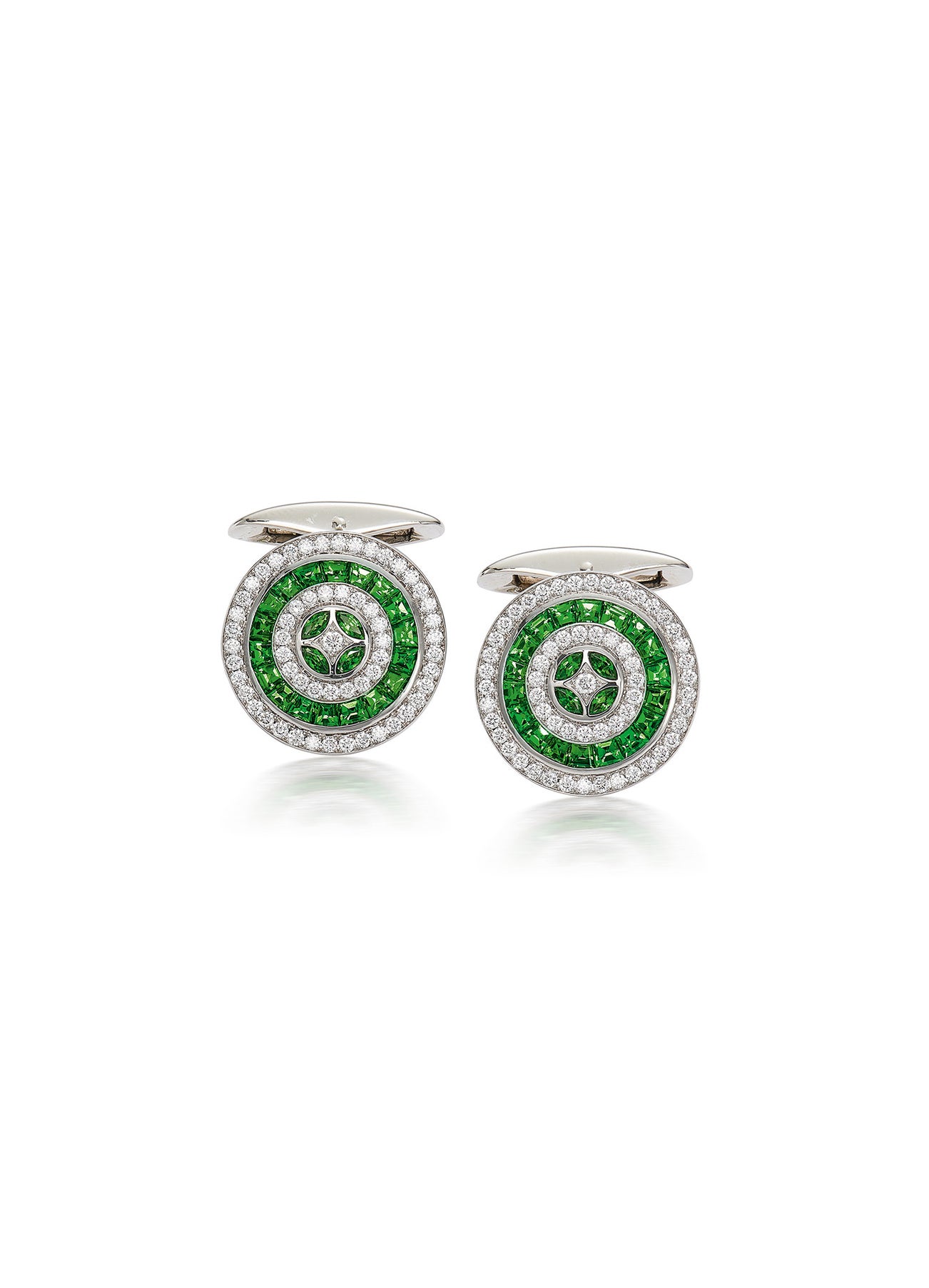 A Pair of Diamond and Tsavorite Garnet Cufflinks