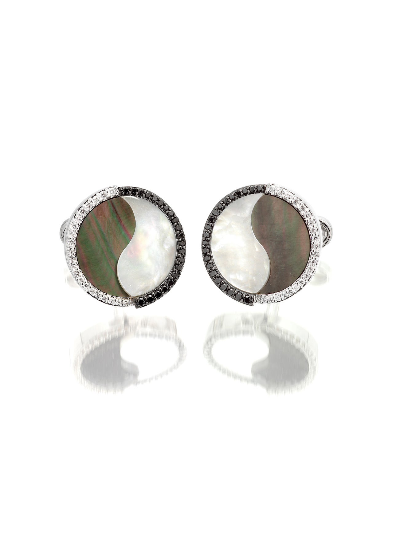 A Pair of Mother-of-Pearl, Diamond and Coloured Diamond Cufflinks