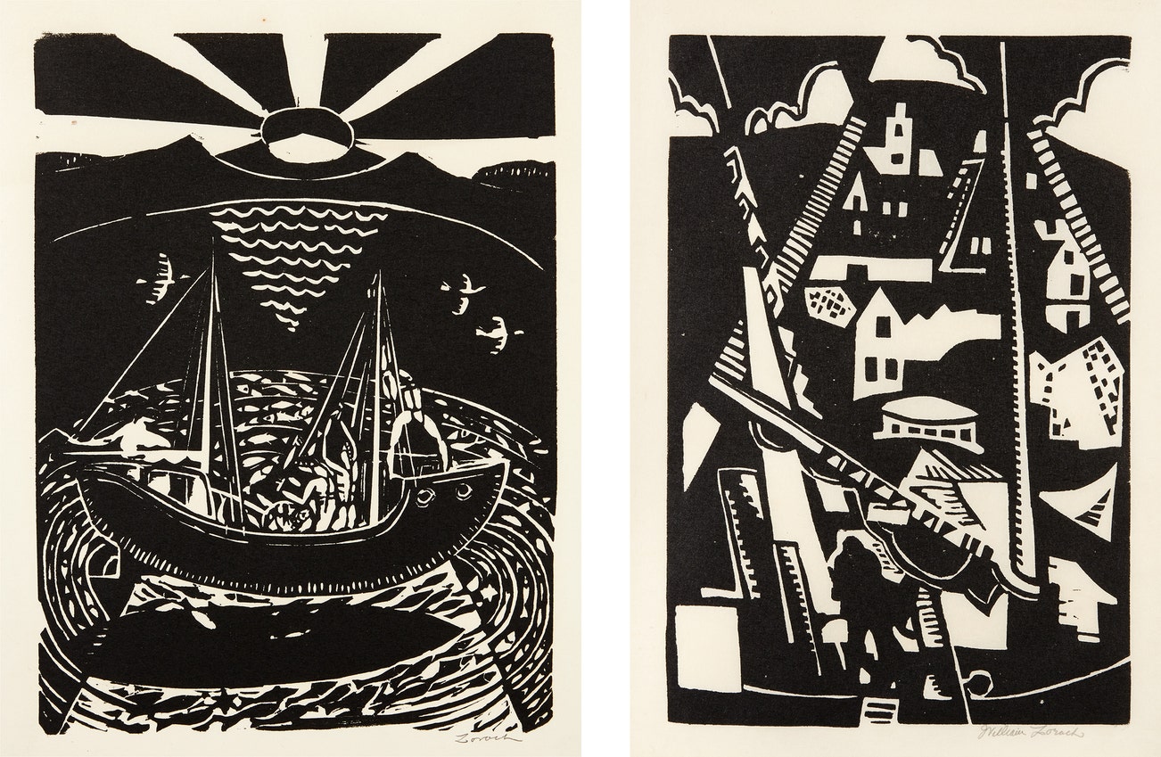 Two linocuts, on Japan paper, with margins.