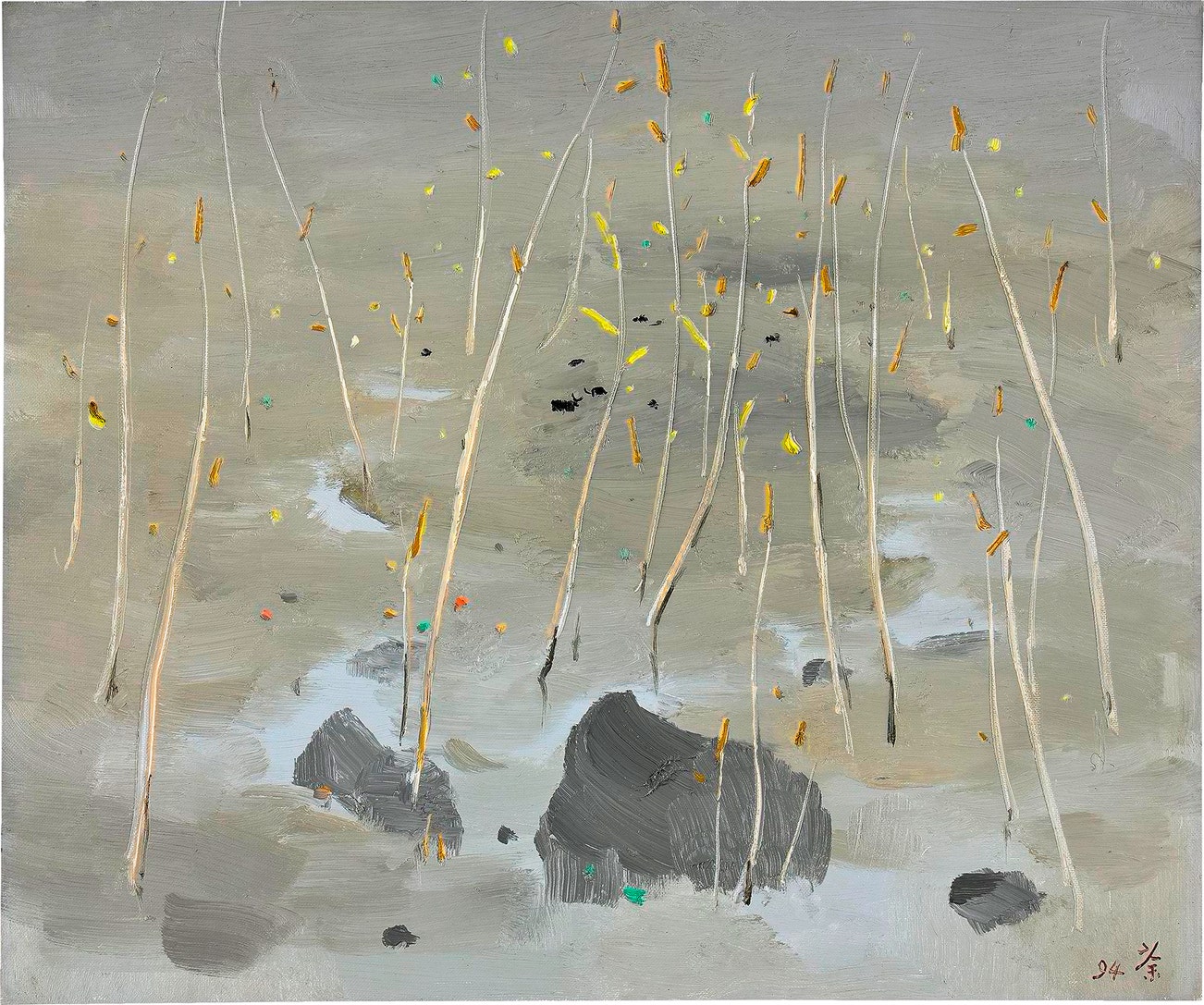 signed with the artist's signature and dated '94' lower right; further signed, titled and dated '"Springs and Autumns" Wu Guanzhong [in Chinese] 1994' on the reverse