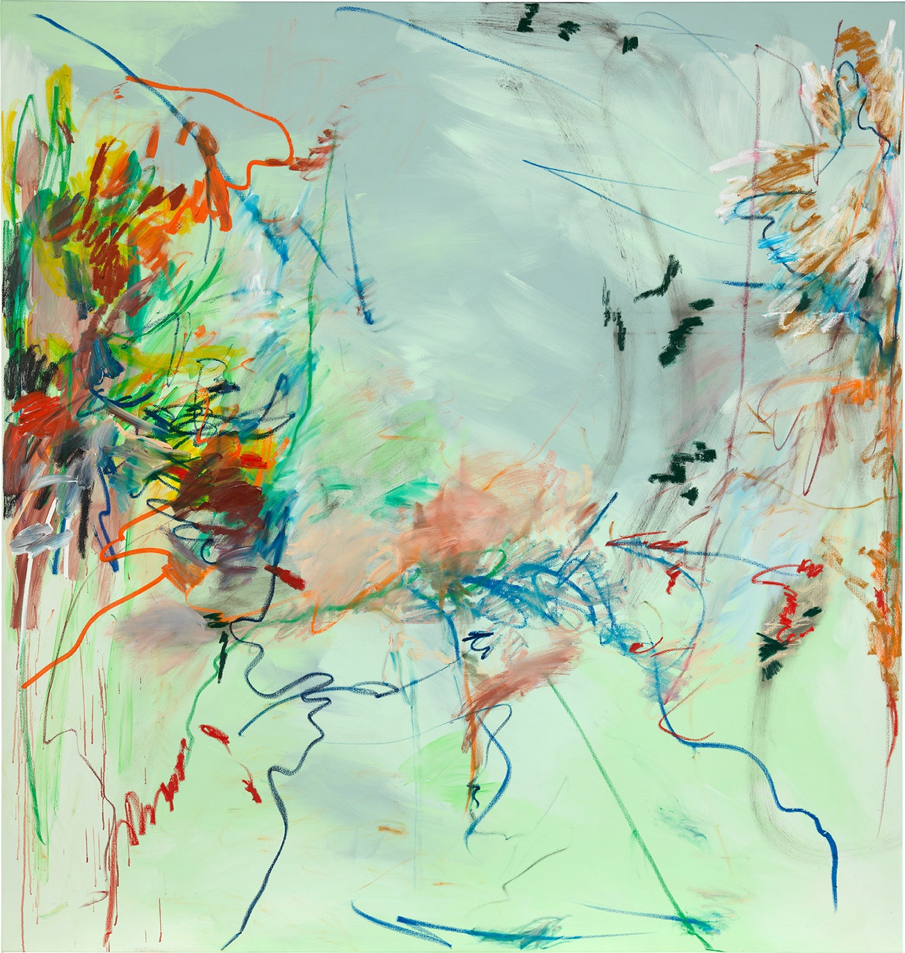 acrylic, oil and oil stick on canvas