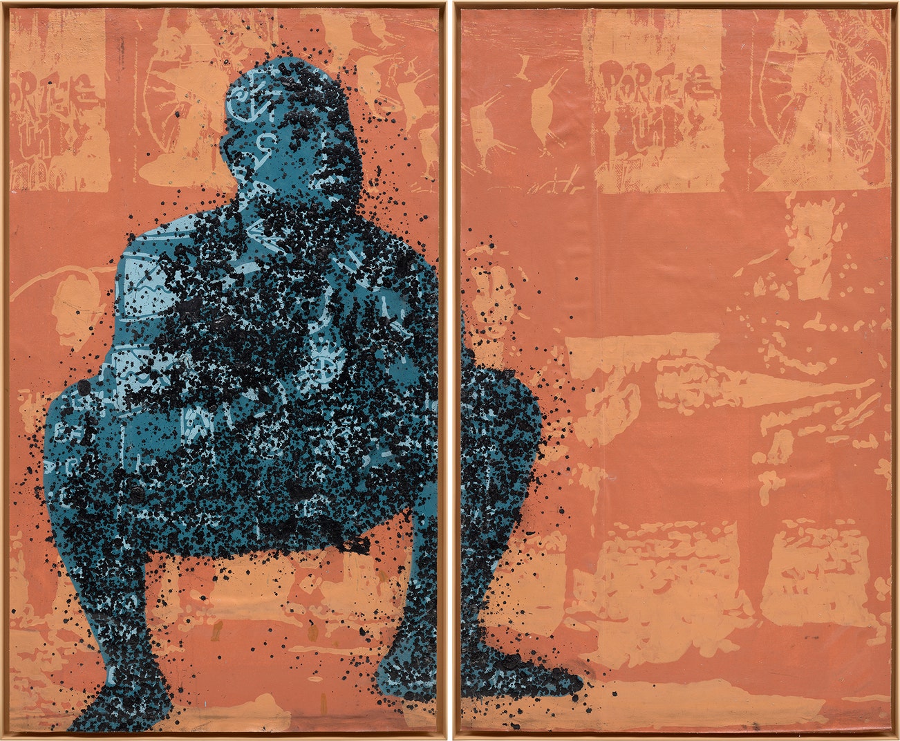 melted recycled plastic and acrylic on canvas laid on panel, in artist's frame, diptych
