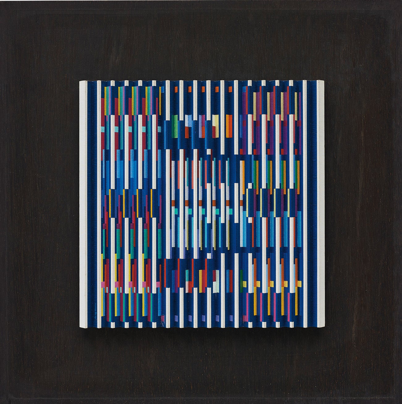 signed 'Agam' upper left of the aluminium element; further signed, titled and inscribed '"Small E/A ND" Agam Paris 1989 Agam' on the reverse of the larger board