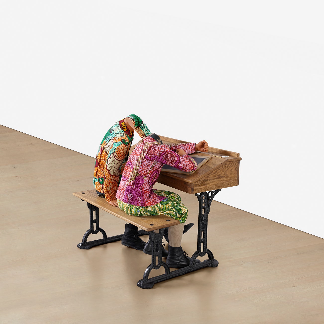 wood, Dutch wax printed cotton, metal and fiberglass