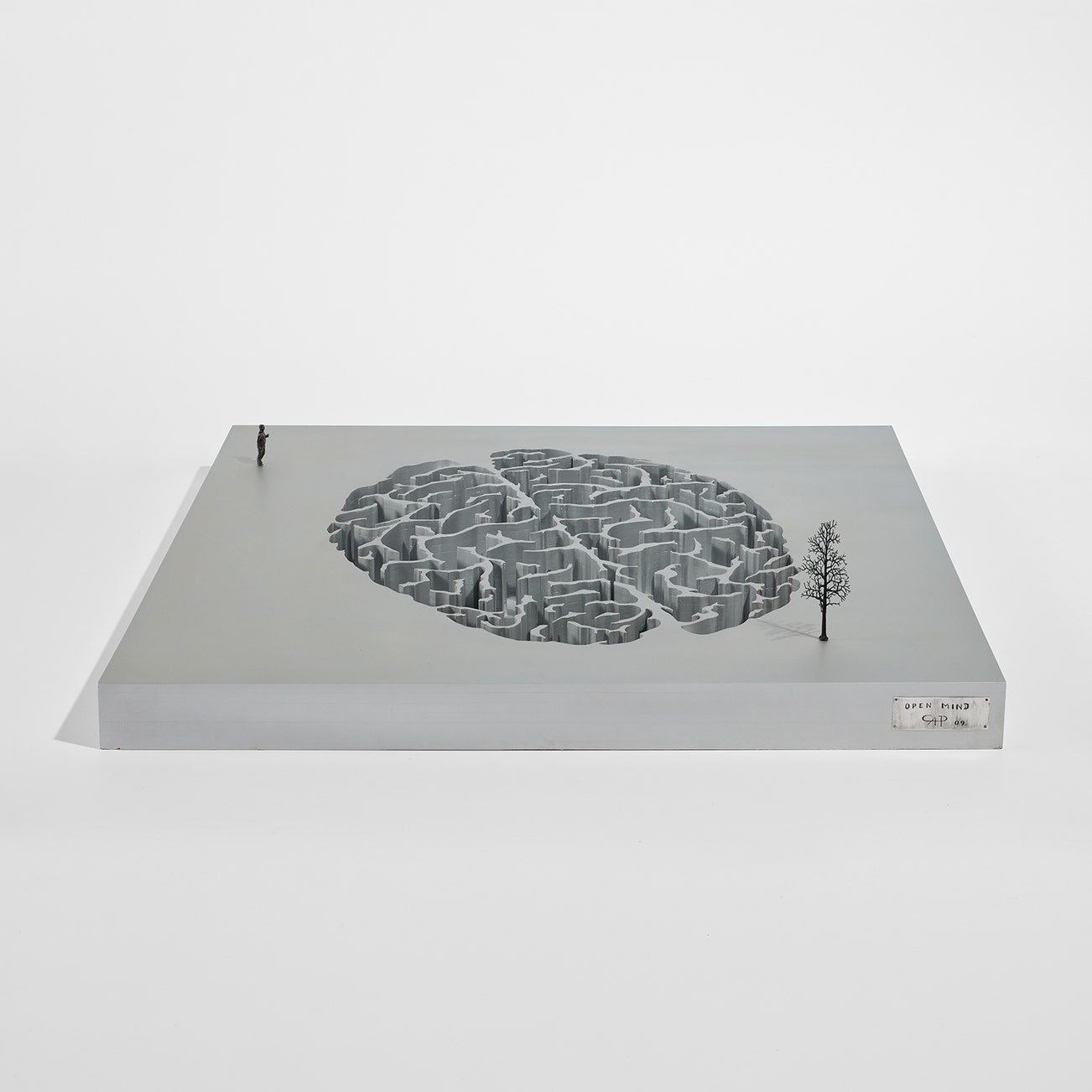 incised with the artist's signature, title and date "OPEN MIND CAP 09" on a plaque affixed to the side