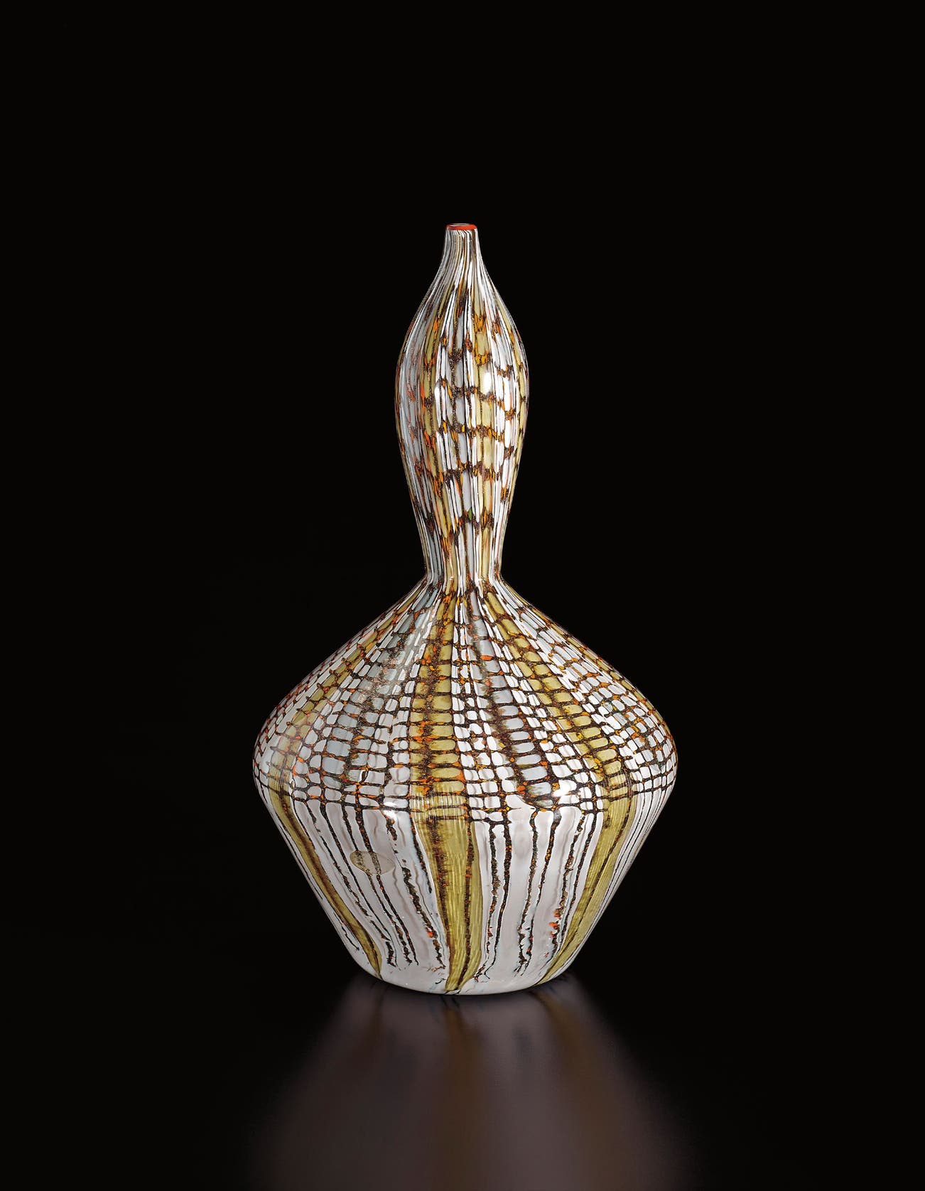 Japanese | 1946Glass art – hard, fragile, cold and often heavy – is not typically designed to be handled. Yoichi Ohira's luminous blown glass vessels, however, offer an exception to this trend. They are small and light enough to be turned in one's hands like a Wunderkammer specimen, inviting the viewer to admire his abstracted design vocabulary of gemstones, polished ivory, veined rocks, shimmering water, agate, moss and lichens. Ohira has been compared to Emile Gallé for his ability to emulate the natural world in glass. Comparisons may also be drawn to Jean Dunand's bronze vessels, Japanese rokusho patina and Otto Natzler's volcanic glazes – an impressive range of media to be translated into glass.