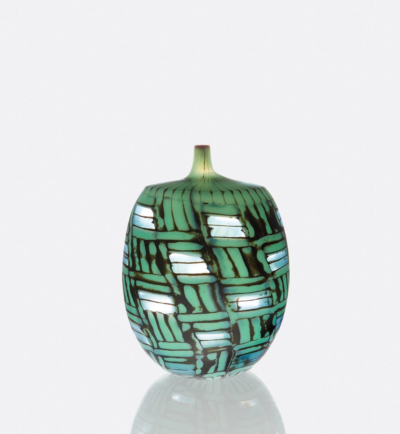 Japanese | 1946Glass art – hard, fragile, cold and often heavy – is not typically designed to be handled. Yoichi Ohira's luminous blown glass vessels, however, offer an exception to this trend. They are small and light enough to be turned in one's hands like a Wunderkammer specimen, inviting the viewer to admire his abstracted design vocabulary of gemstones, polished ivory, veined rocks, shimmering water, agate, moss and lichens. Ohira has been compared to Emile Gallé for his ability to emulate the natural world in glass. Comparisons may also be drawn to Jean Dunand's bronze vessels, Japanese rokusho patina and Otto Natzler's volcanic glazes – an impressive range of media to be translated into glass.