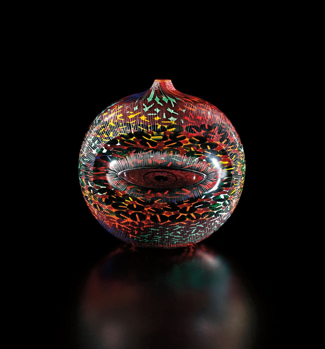 Japanese | 1946Glass art – hard, fragile, cold and often heavy – is not typically designed to be handled. Yoichi Ohira's luminous blown glass vessels, however, offer an exception to this trend. They are small and light enough to be turned in one's hands like a Wunderkammer specimen, inviting the viewer to admire his abstracted design vocabulary of gemstones, polished ivory, veined rocks, shimmering water, agate, moss and lichens. Ohira has been compared to Emile Gallé for his ability to emulate the natural world in glass. Comparisons may also be drawn to Jean Dunand's bronze vessels, Japanese rokusho patina and Otto Natzler's volcanic glazes – an impressive range of media to be translated into glass.