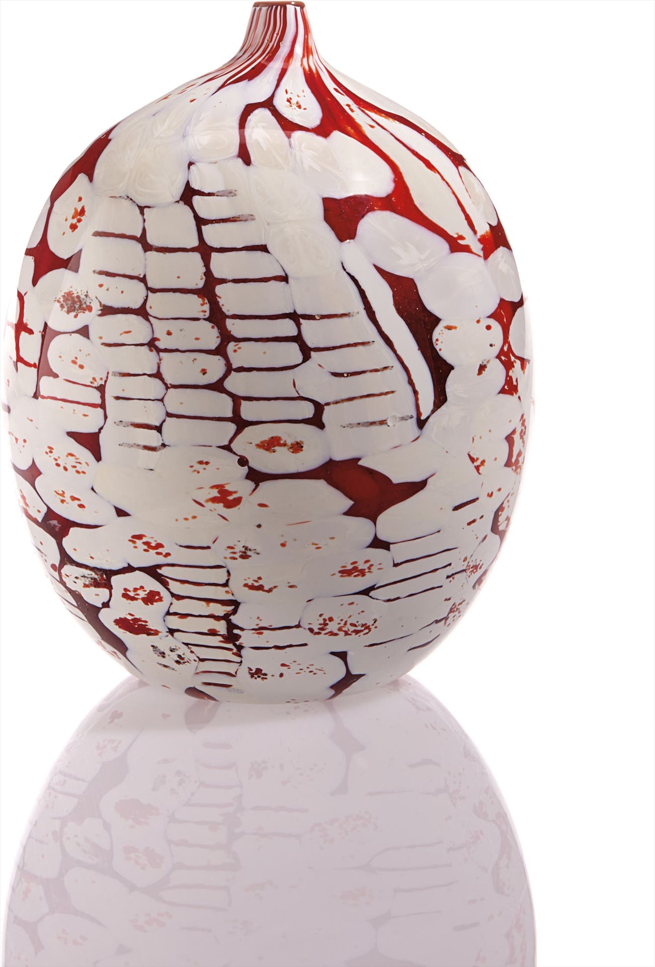 Japanese | 1946Glass art – hard, fragile, cold and often heavy – is not typically designed to be handled. Yoichi Ohira's luminous blown glass vessels, however, offer an exception to this trend. They are small and light enough to be turned in one's hands like a Wunderkammer specimen, inviting the viewer to admire his abstracted design vocabulary of gemstones, polished ivory, veined rocks, shimmering water, agate, moss and lichens. Ohira has been compared to Emile Gallé for his ability to emulate the natural world in glass. Comparisons may also be drawn to Jean Dunand's bronze vessels, Japanese rokusho patina and Otto Natzler's volcanic glazes – an impressive range of media to be translated into glass.