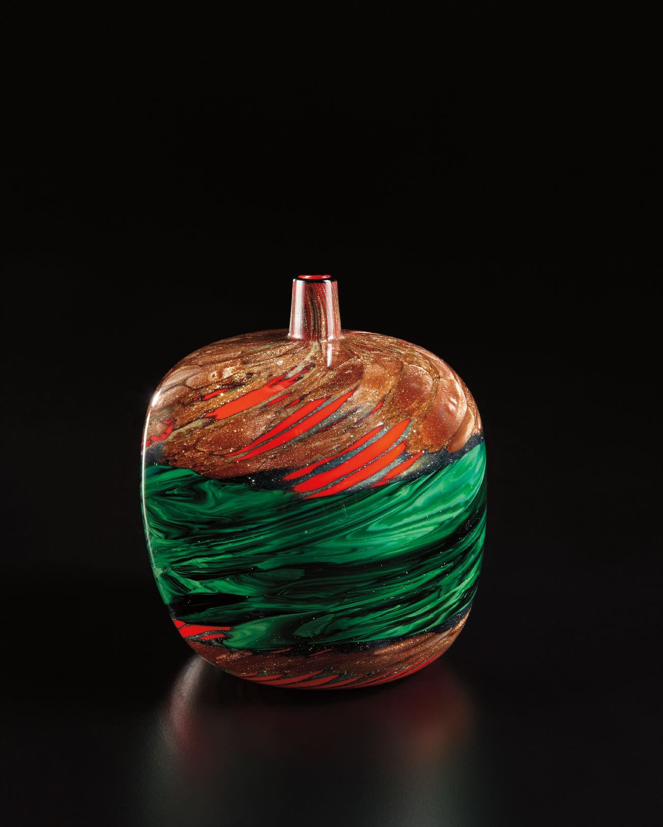 Japanese | 1946Glass art – hard, fragile, cold and often heavy – is not typically designed to be handled. Yoichi Ohira's luminous blown glass vessels, however, offer an exception to this trend. They are small and light enough to be turned in one's hands like a Wunderkammer specimen, inviting the viewer to admire his abstracted design vocabulary of gemstones, polished ivory, veined rocks, shimmering water, agate, moss and lichens. Ohira has been compared to Emile Gallé for his ability to emulate the natural world in glass. Comparisons may also be drawn to Jean Dunand's bronze vessels, Japanese rokusho patina and Otto Natzler's volcanic glazes – an impressive range of media to be translated into glass.