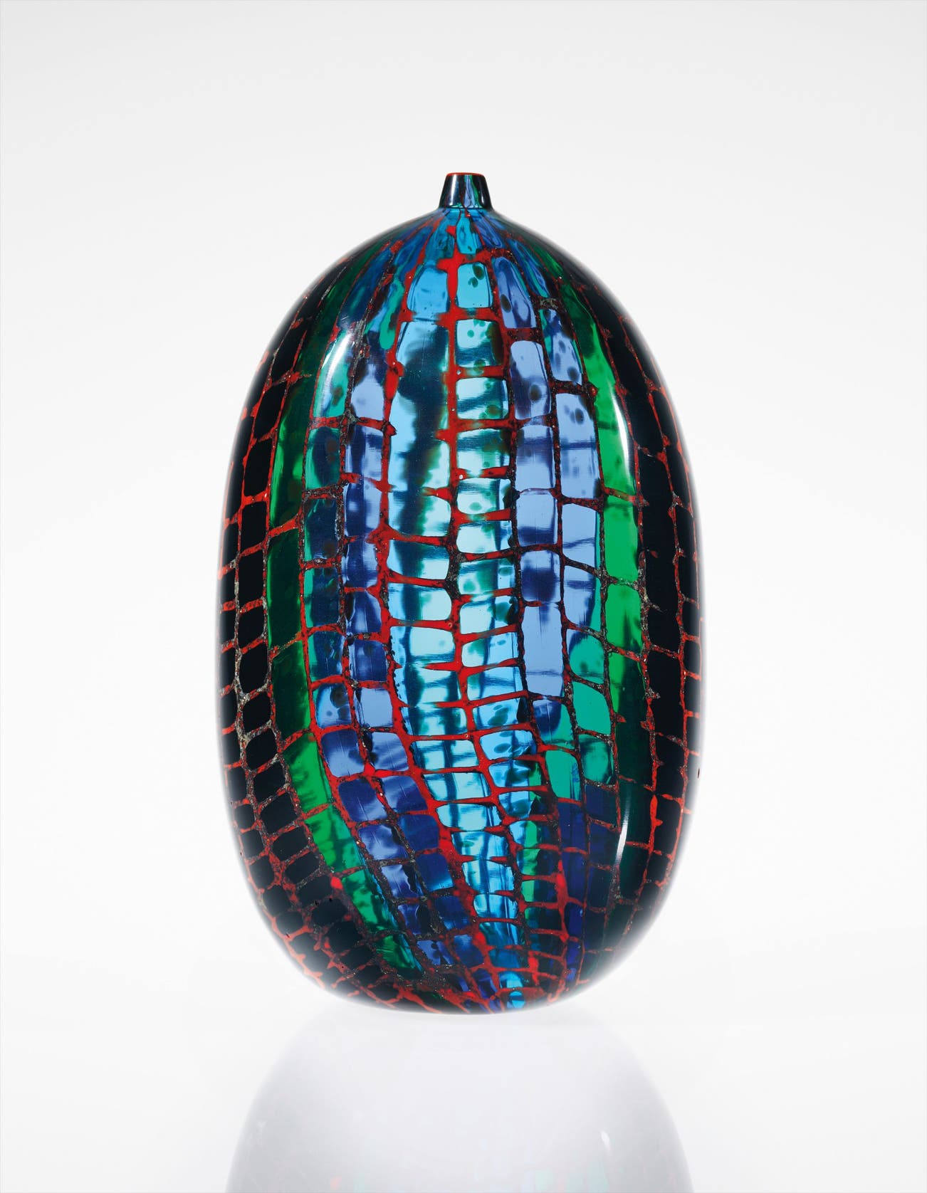 Yoichi Ohira started his career as a freelance artist in 1991. He created exquisite and unique pieces by using the mosaic glass technique called murrina, an ancient technique dating from the II millennium BC, and then further developed by the Alexandrine and Roman glass blowers. Ohira selected the composition of polychrome glass tesserae, which, once fused by the heat of the furnace, was handed over to a trusted glass master, who picked it up with the blowpipe and modelled it. The grinding process would then be completed by the master engraver. Ohira would be present throughout the whole process to make sure that every minute detail would correspond to his original design.