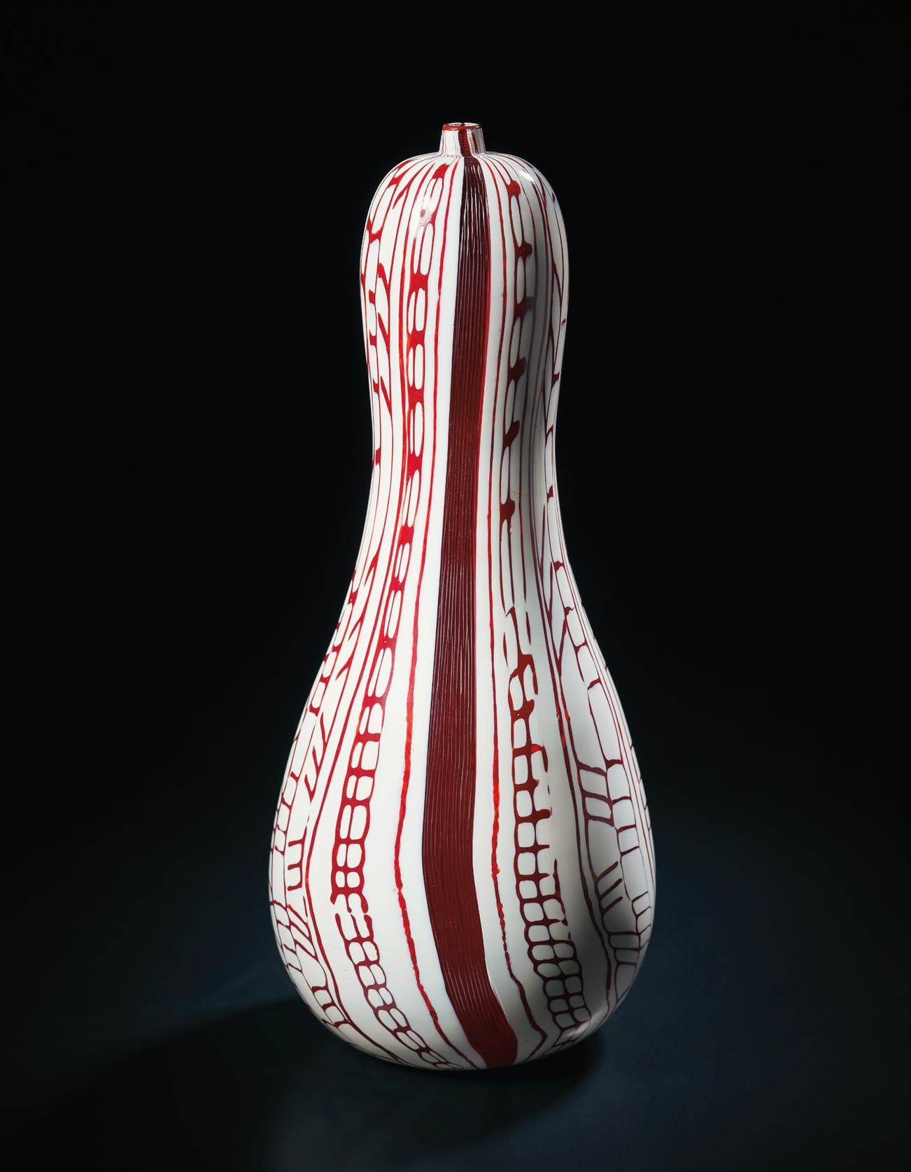 Unique 'Zucca in avorio con fili rossi' vase, from the 'Metamorfosi Orientale' series