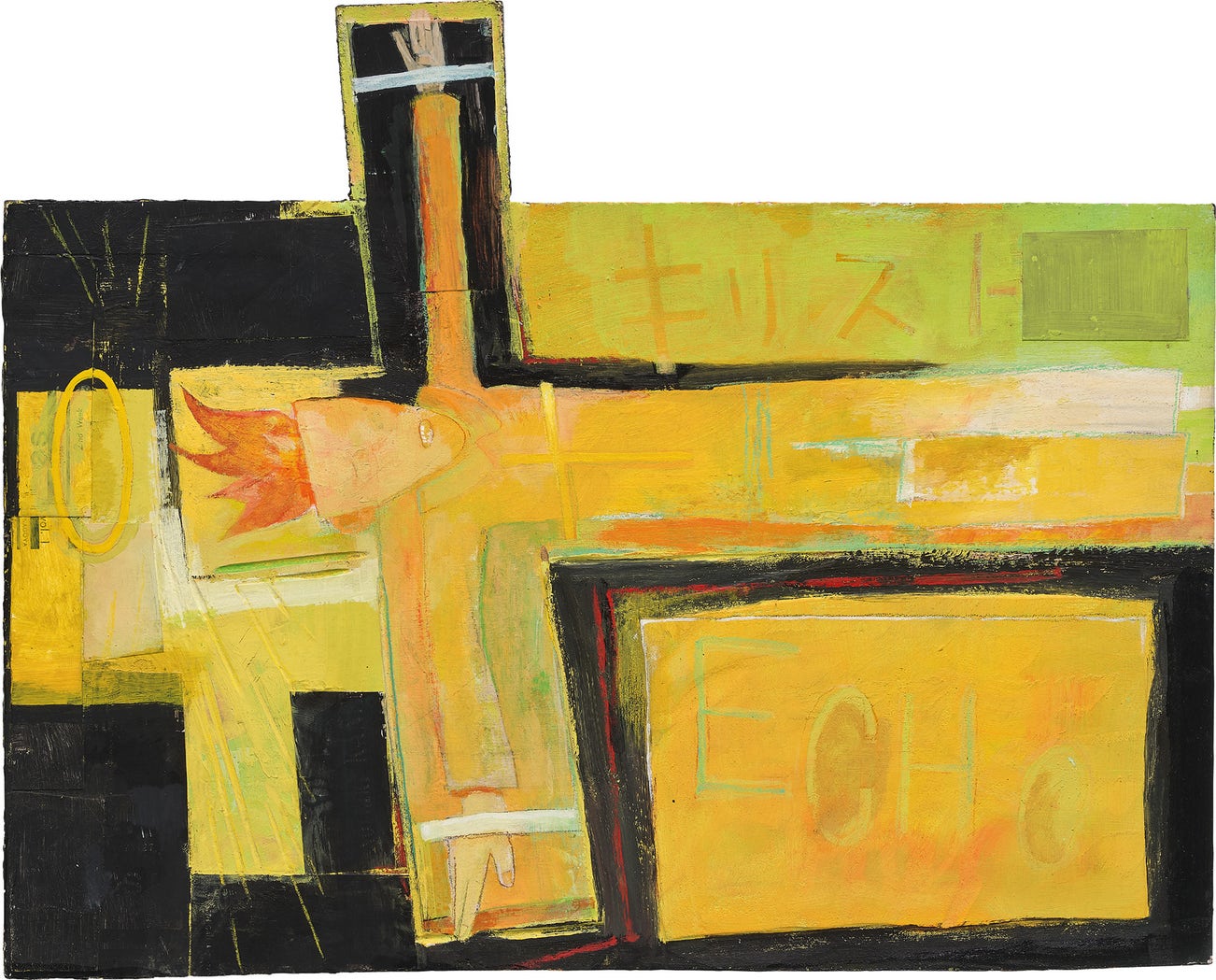 acrylic and colour pencil on board