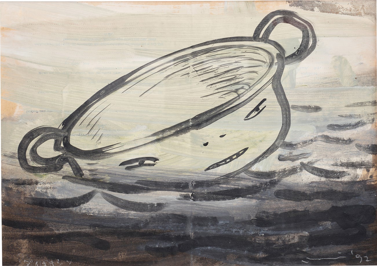 signed, titled and dated 'Dioxin [in Kanji] Yoshitomo Nara '92' lower margin; signed titled and dated 'Yoshitomo Nara '92 Dioxin [in Kanji]' on the reverse