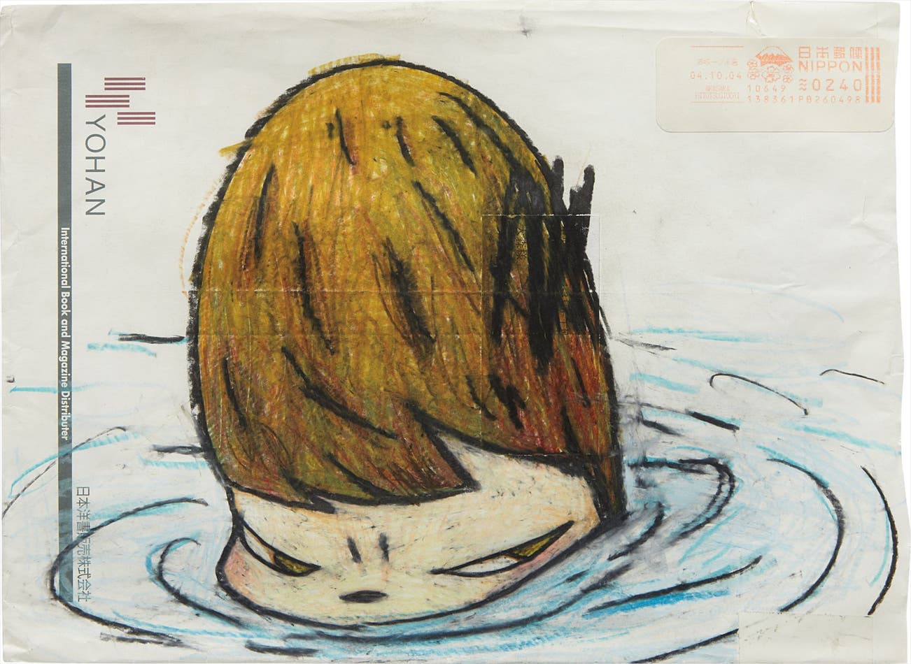 colored pencil on found envelope