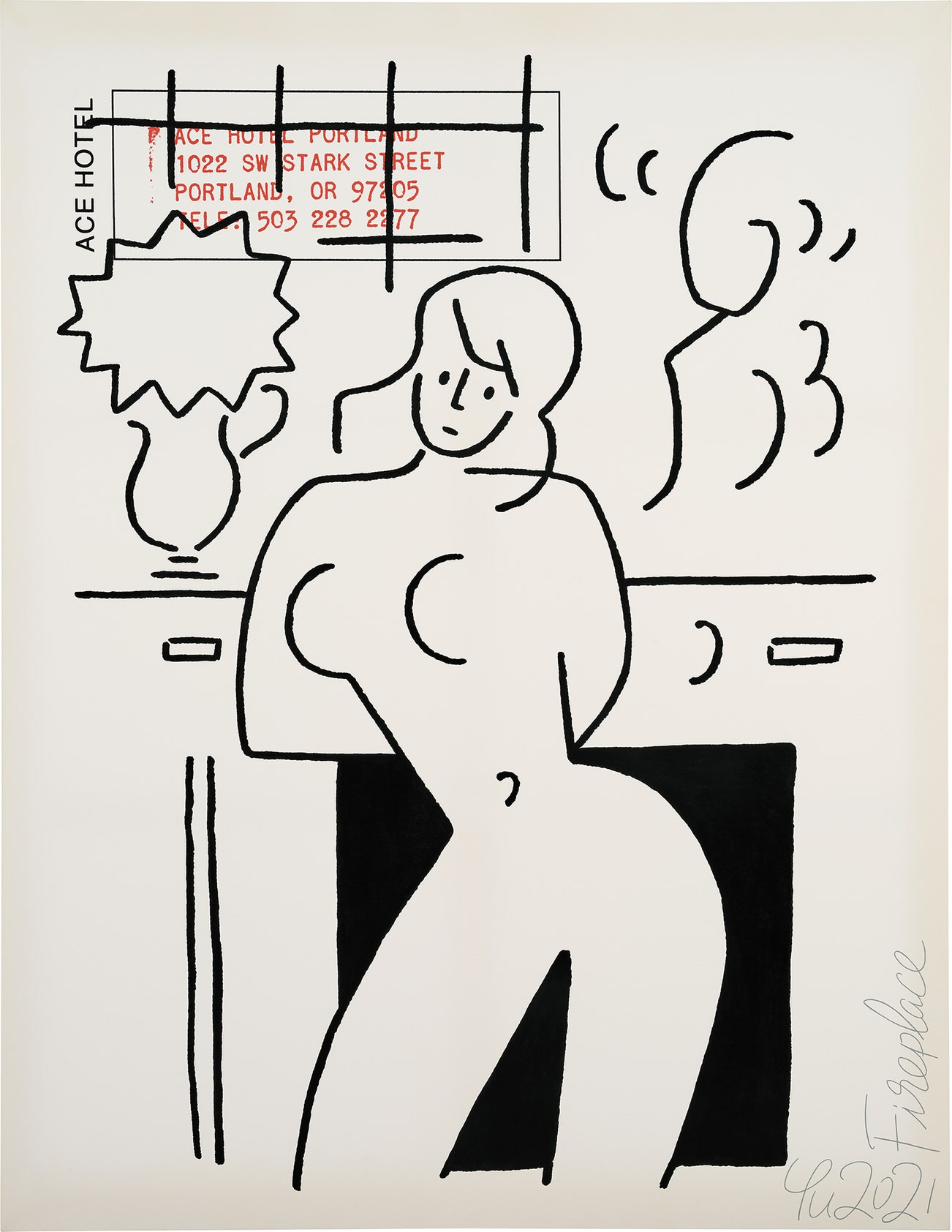 signed, titled and dated 'Yu 2021 "Fireplace"' lower right; further signed and dated 'Yu Nagaba 2021' on the stretcher