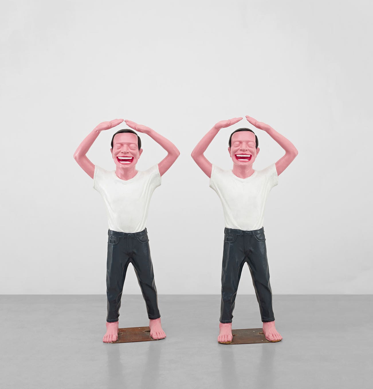 As part of 5 unique sets of sculptures that the artist created, the present lot is part of the group entitled Contemporary Terracotta Warriors No. 5. Yue Minjun created five of these sets of unique sculptures, each comprising 25 warriors with a different stylistic rendering of the arms: some with their arms crossed in front of their bodies, some with their hands over their ears and, in this instance, with their arms raised. The artist wittily injects contemporaneity through his reinterpretation of the historical terracotta warriors found in the tomb of Qin Shi Huangdi, one of China’s most influential emperors. Yue Minjun creates each of his warriors to be identical in order not to exhibit individualism, boldly critiquing the numbing similitude that plagues current society in the modern age.