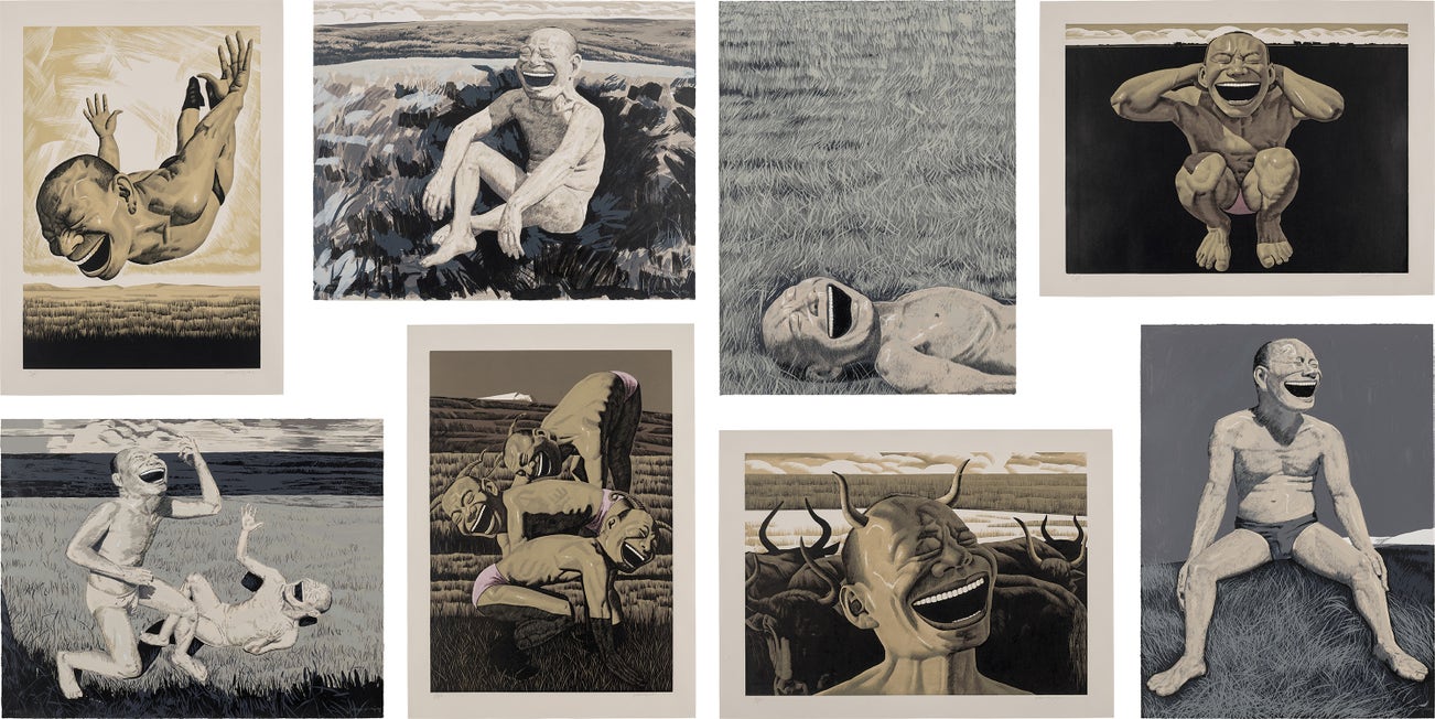five parts signed and numbered 'Yue Minjun '13/80' lower margin