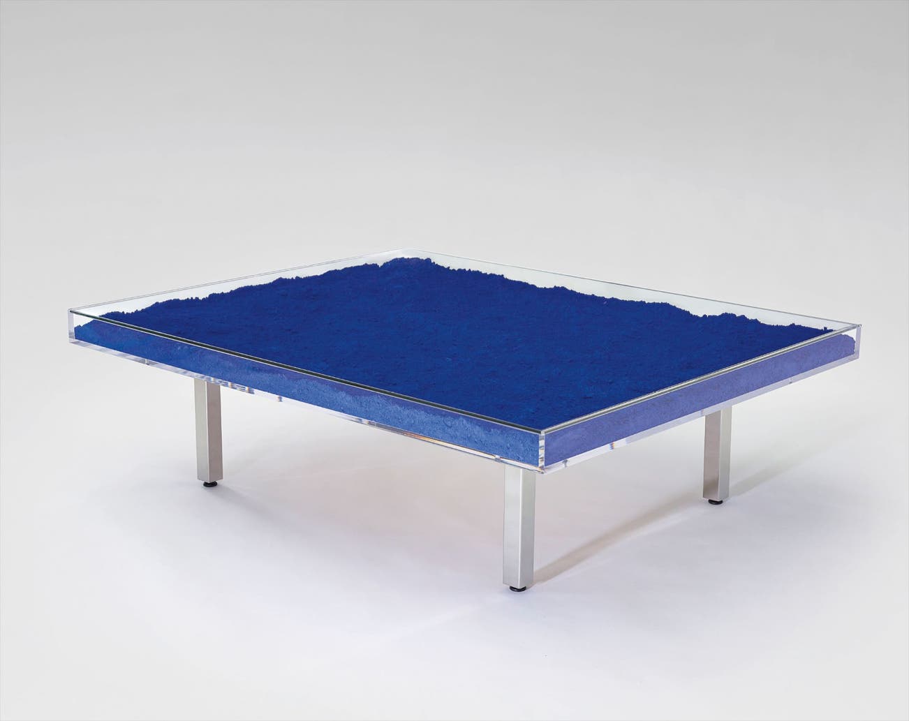 IKB pigment, glass, Plexiglas, chrome-plated metal.