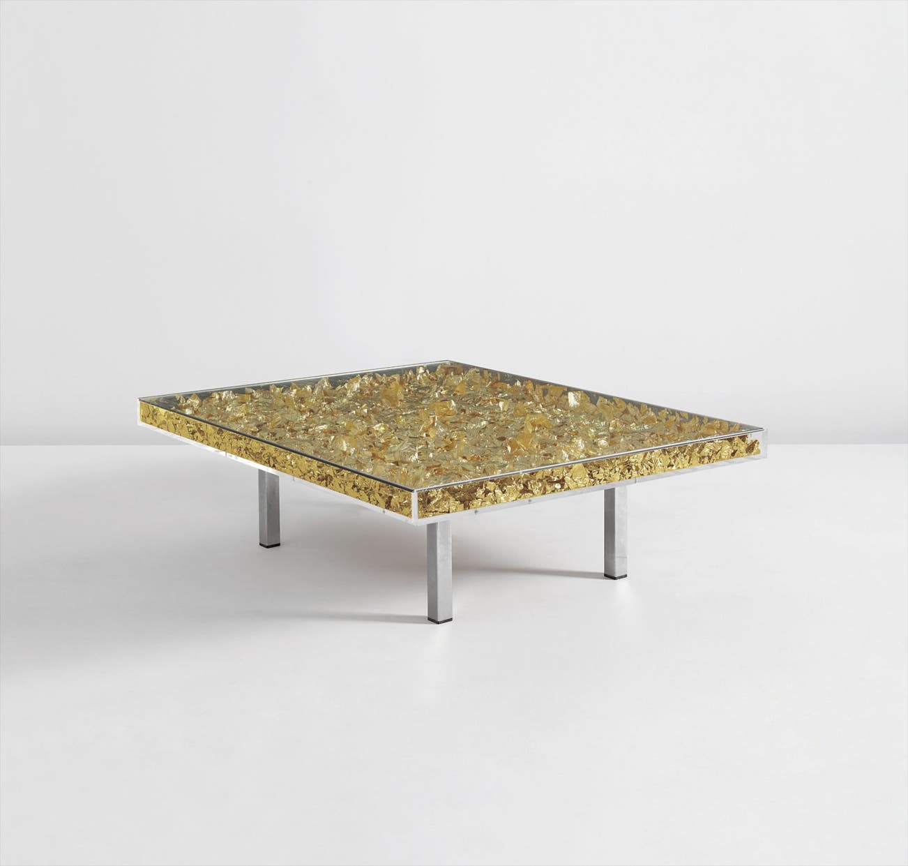 22-karat gold leaf, Perspex, glass, steel, wood.