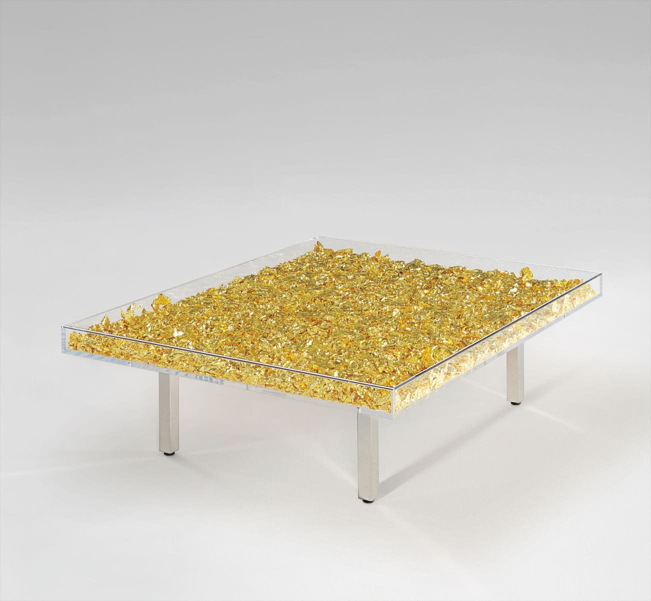 22-karat gold leaf, glass, Plexiglas and chrome-plated metal,