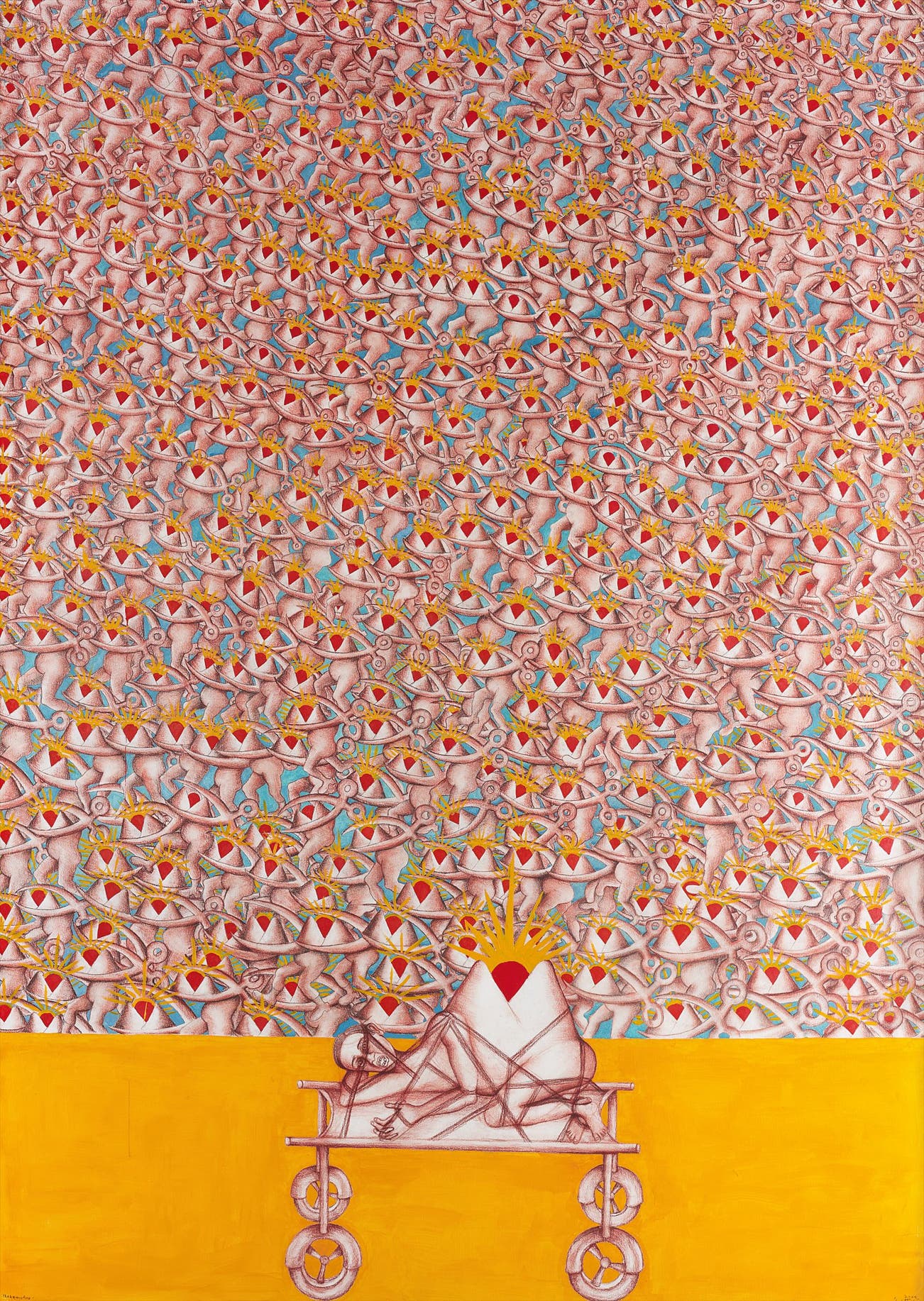 acrylic, conte crayon and charcoal on paper