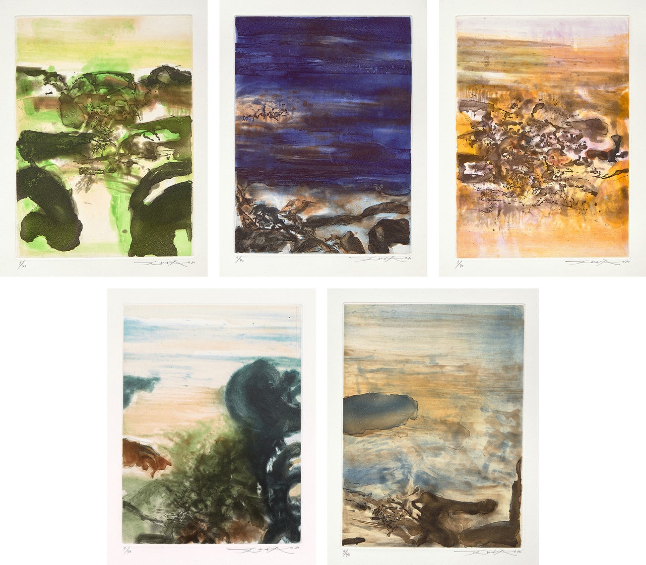 The additional suite all signed, dated and numbered 9/40 in pencil and also signed on the first print and the justification of the book by the artist and author Philippe Jaccottet (the total edition is 120, there were also 20 hors commerce and 20 artist's proofs in Roman numerals), published by Maeght, Paris, the five signed prints framed.