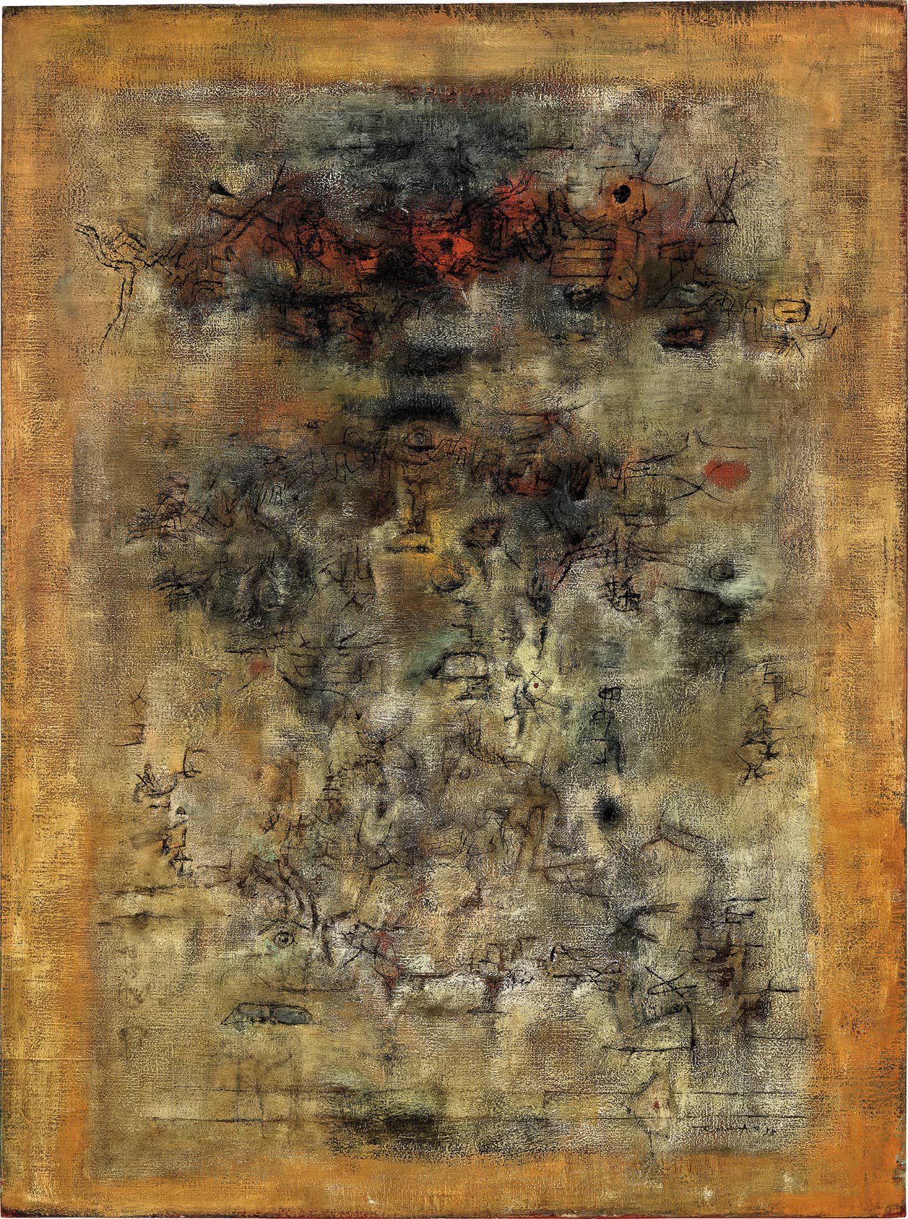 The present work, Ailleurs, was completed in 1955 – a moment when Zao’s style of painting underwent a crucial and decisive transformation. As a teaching assistant at his alma mater (the Fine Art School of Hangzhou) in the 1940s, Zao made the decision to move to Paris in pursuit of wider artistic possibilities that Chinese traditional art education could not satisfy. Upon his arrival in Paris, Zao spent much time visiting art museums to learn about the works of Western masters. Hoping to be accepted as a painter in Europe, Zao deliberately avoided traditional Chinese techniques and media such as ink and brush. After several years of artistic pursuit and self-discovery, Zao eventually returned to the Chinese traditions that he had originally shied away from, achieving artistic liberation and developing a unique personal style as he stepped away from the world of figuration and moved towards abstraction. Ailleurs tells of Zao as a stranger in a foreign land where he had found his artistic path; through this journey he had the opportunity to explore his identity and discover, examine, unite and sublimate the innovations, traditions, and cultures of the East and the West.