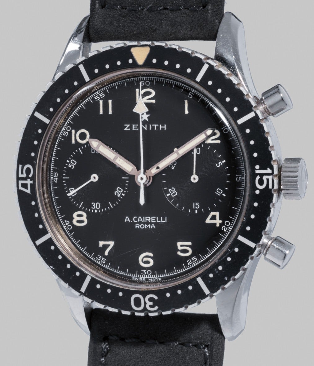 They were all supplied through A. Cairelli, the prominent Roman retailer of watches, clocks, and mechanical instrumentation. Designed for AMI’s pilots for mission use, many were not issued due to an abrupt cancellation by the AMI. A. Cairelli sold the remaining stock – all with no military inscriptions on their casebacks – privately to civilians.